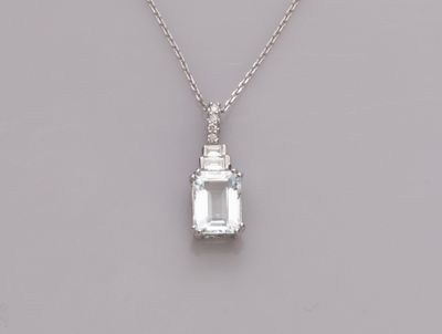 Pendentif goute en or gris 750°/°° (18K), serti d'une topaze…