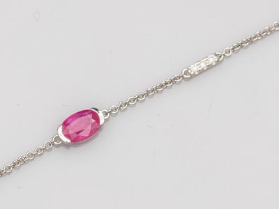 Collier en platine, à fine maille forçat, orné d'un diamant …