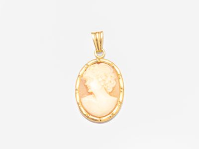 Pendentif en or jaune 750°/°° (18K), serti d'un camée coquil…