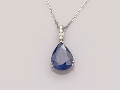 Pendentif en or gris 750°/°°(18K) , serti d'un saphir taille…
