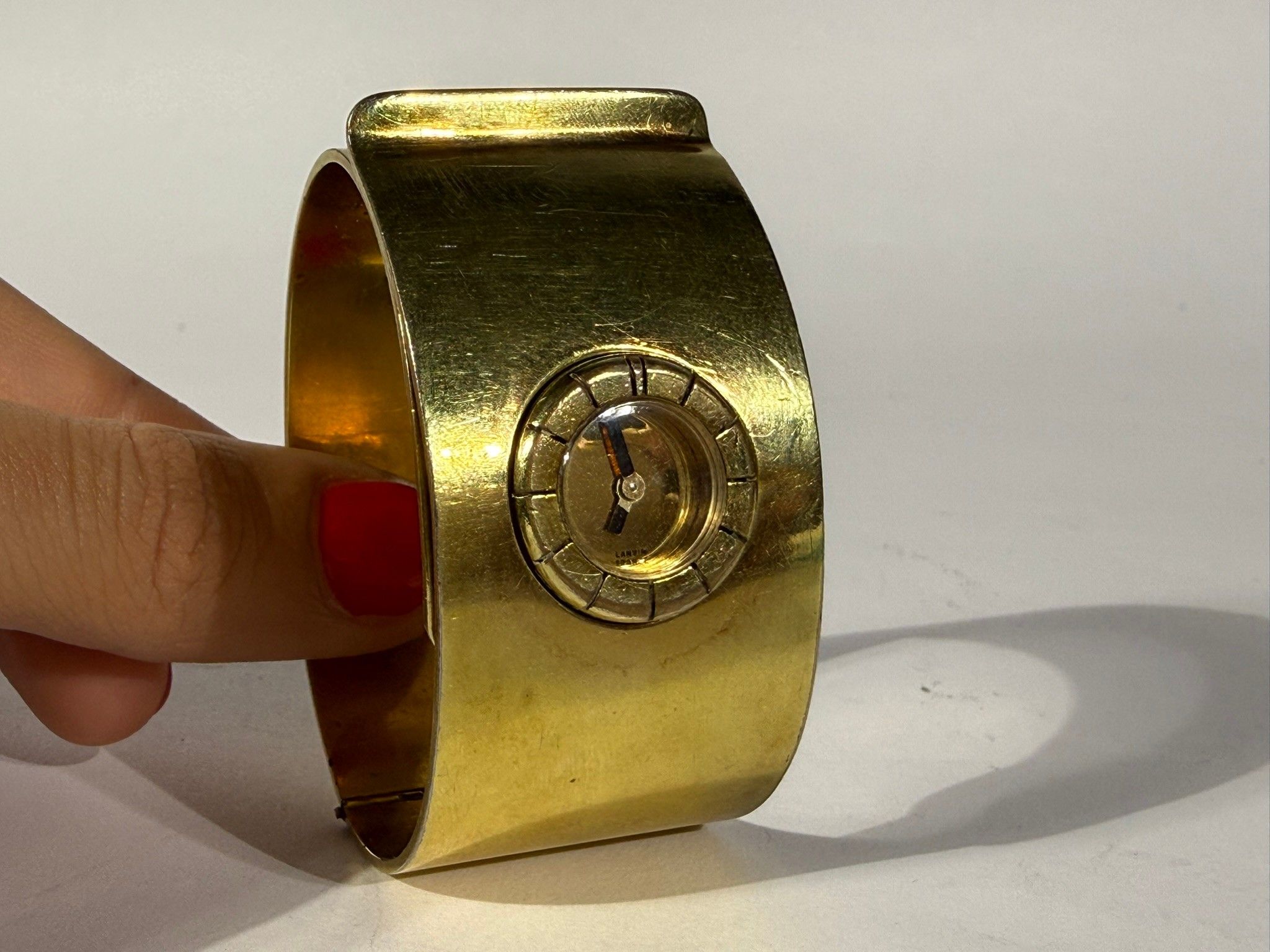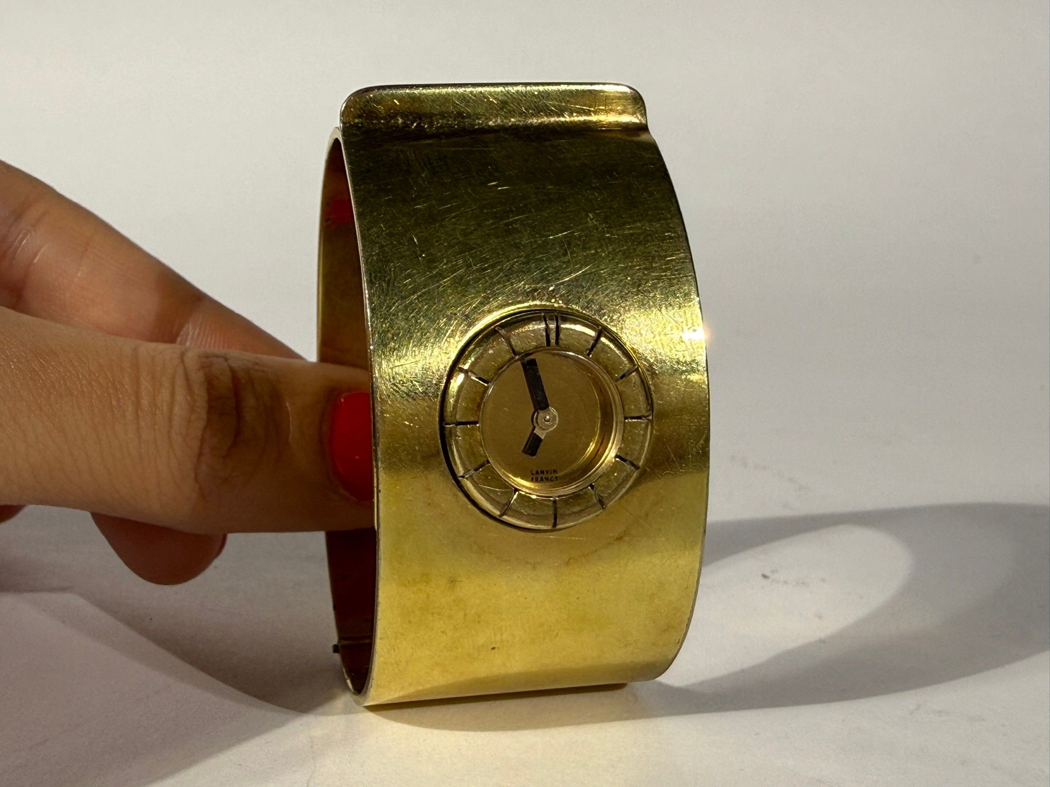 LANVIN - Vers 1975 Montre manchette en métal doré, mouvement…