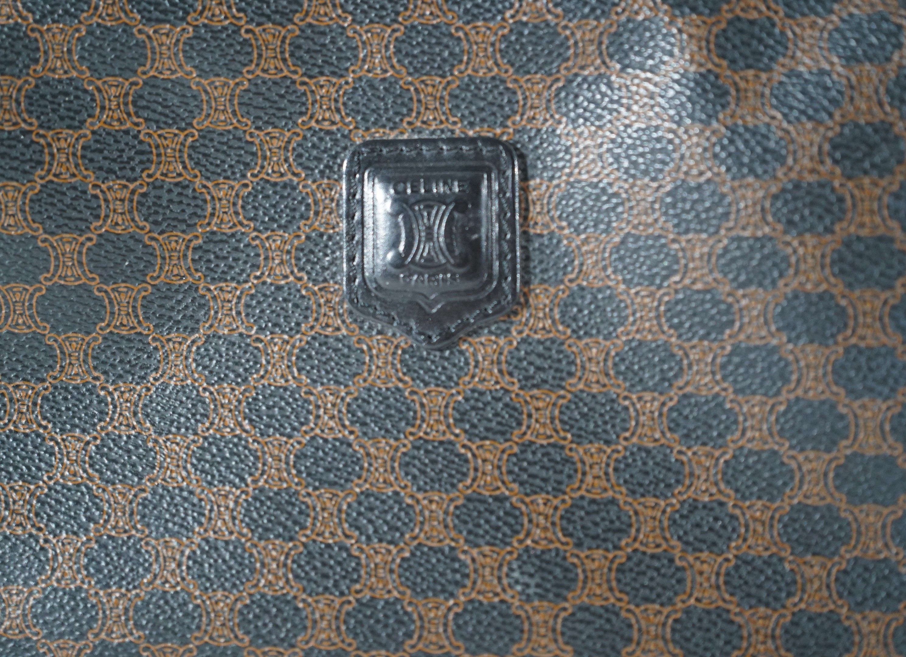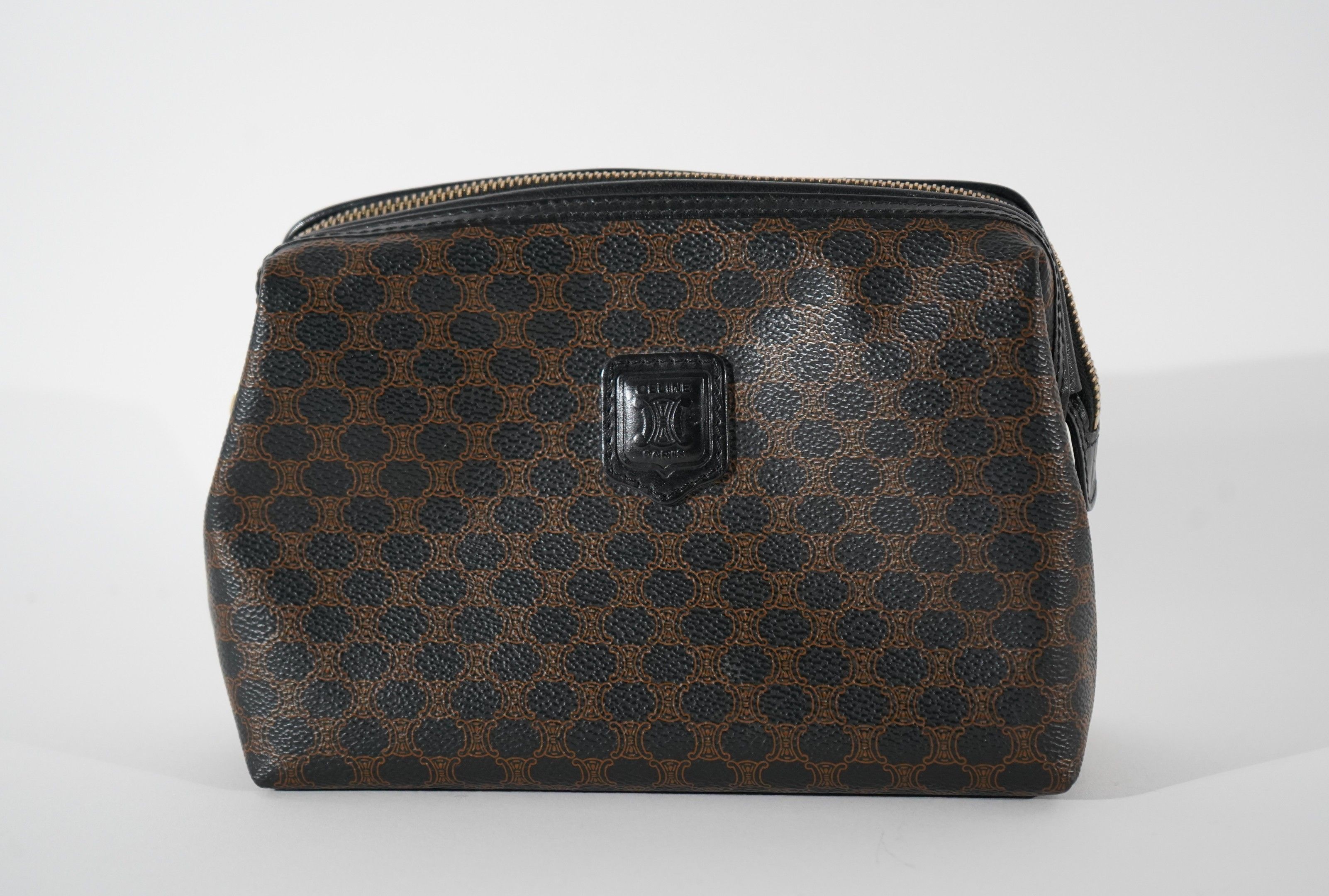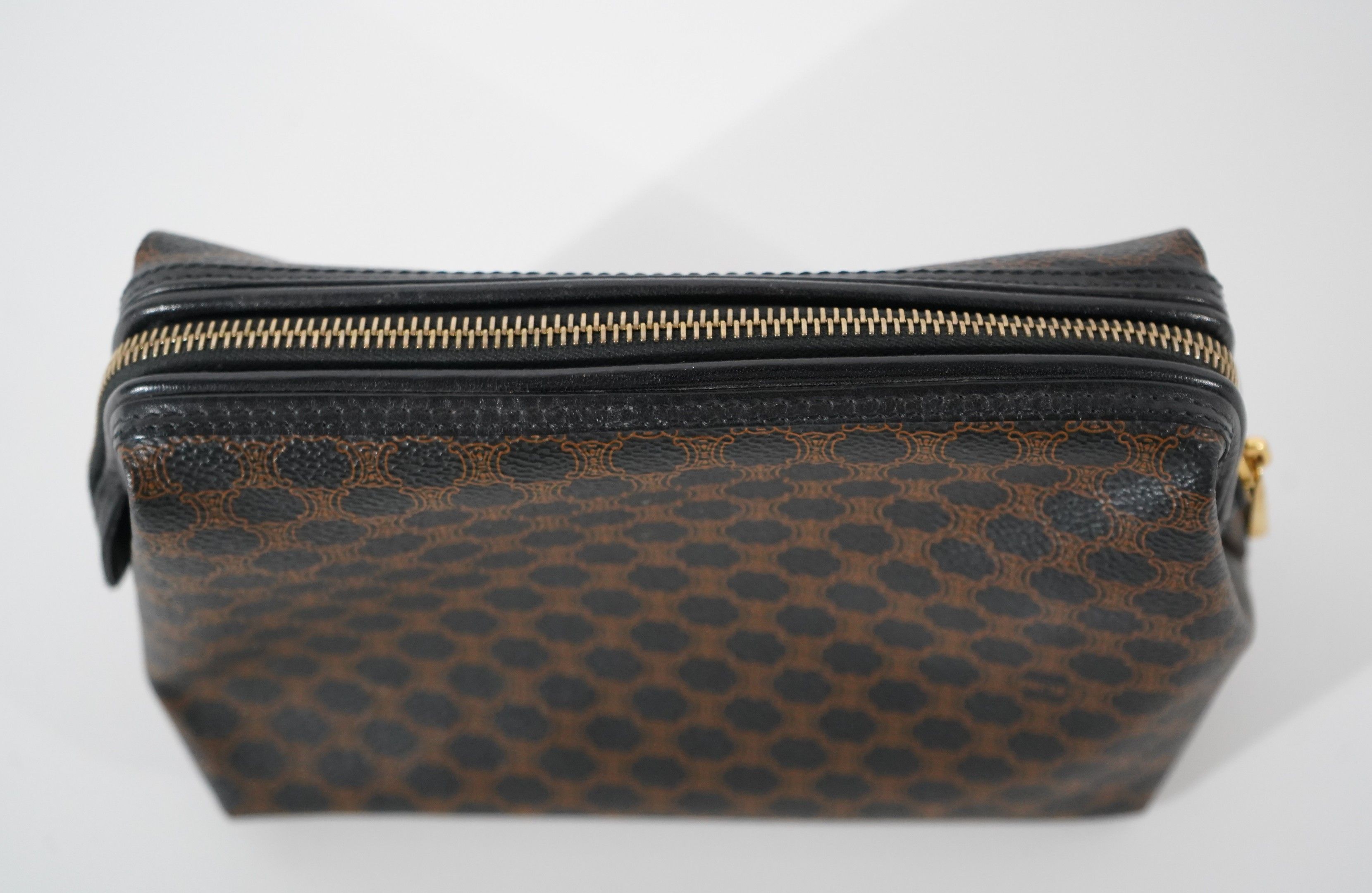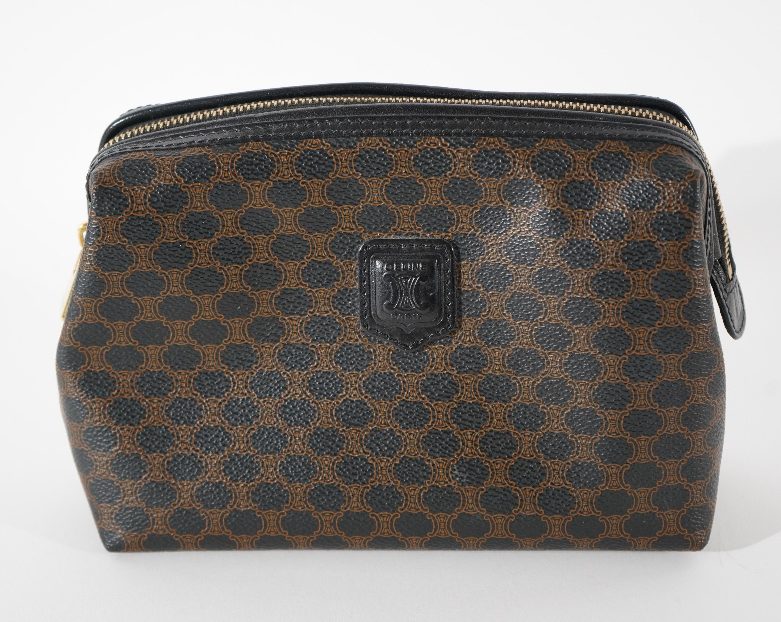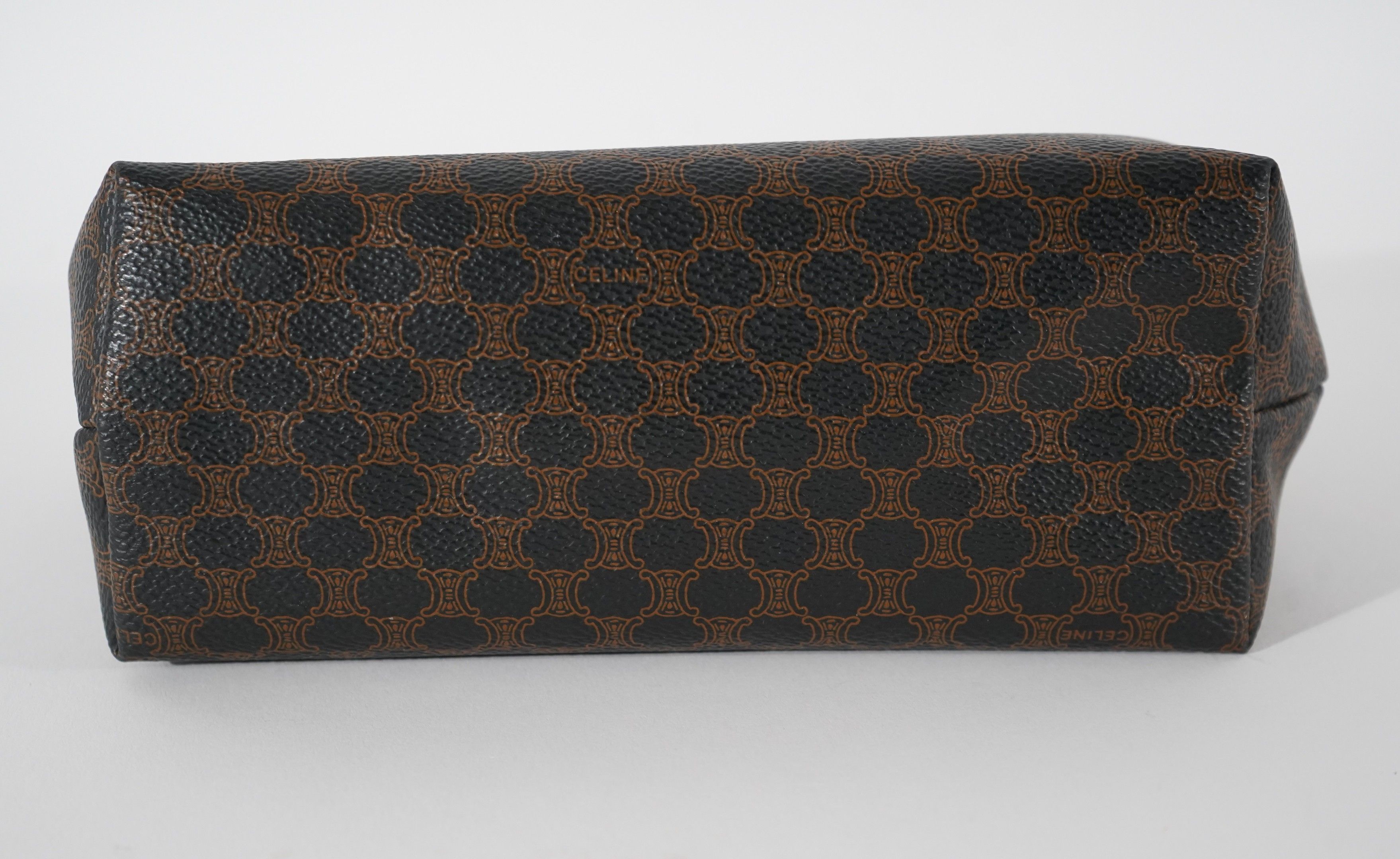 CÉLINE Grande trousse en cuir noir et toile Triomphe noire e…