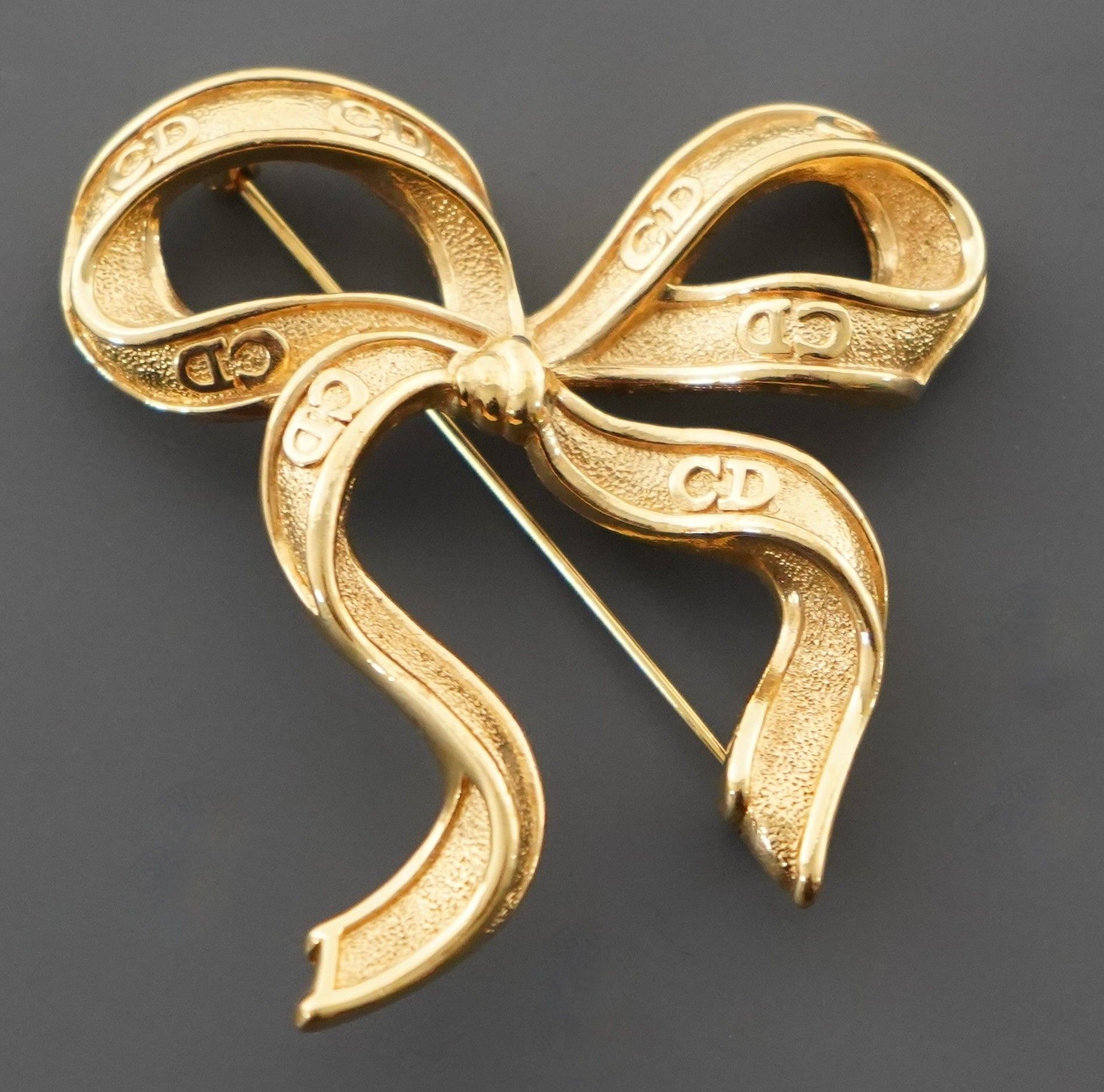 CHRISTIAN DIOR Broche nœud en métal doré.