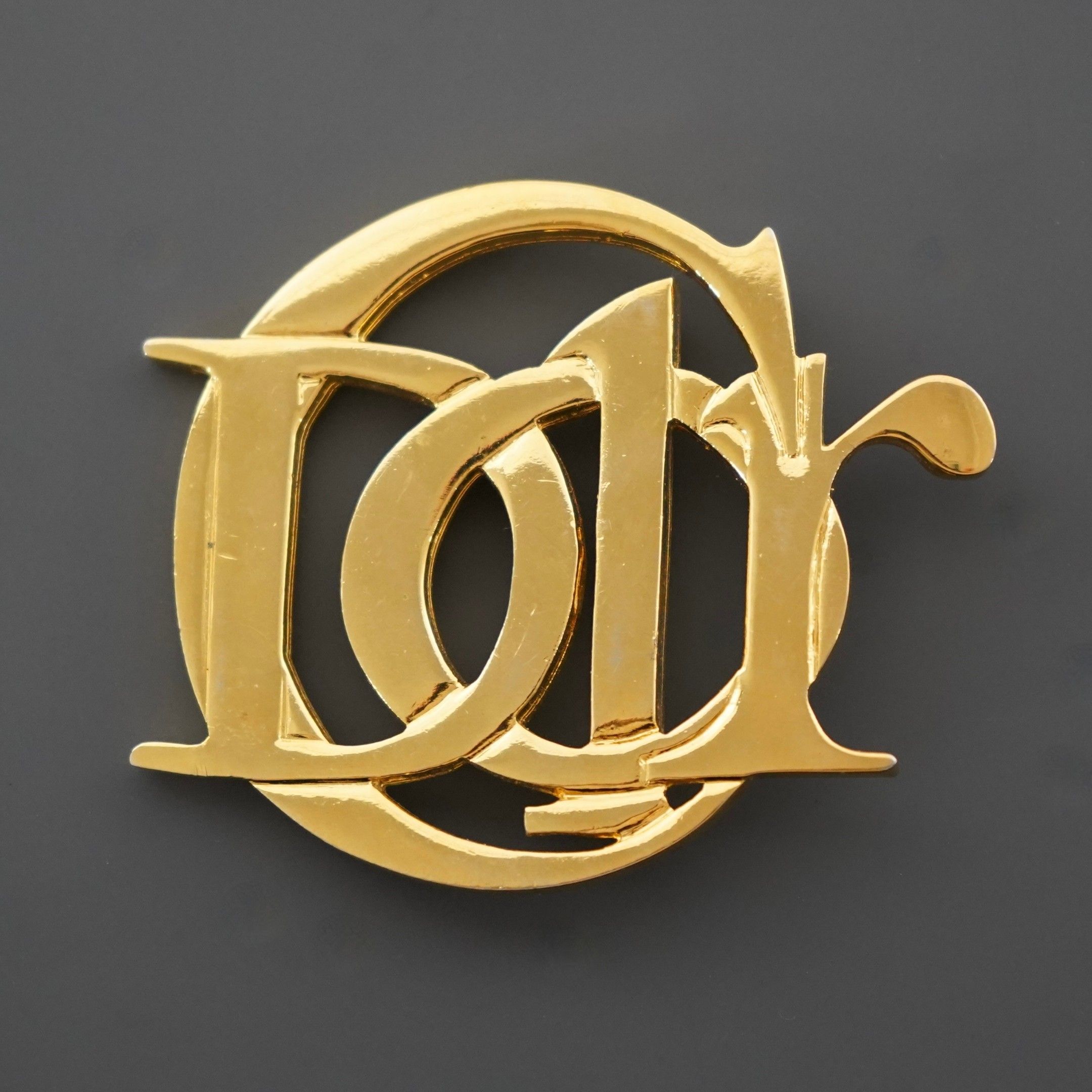 Broche en métal doré à décor inscrit DIOR. L : 5,5 cm (rayures d'usage)