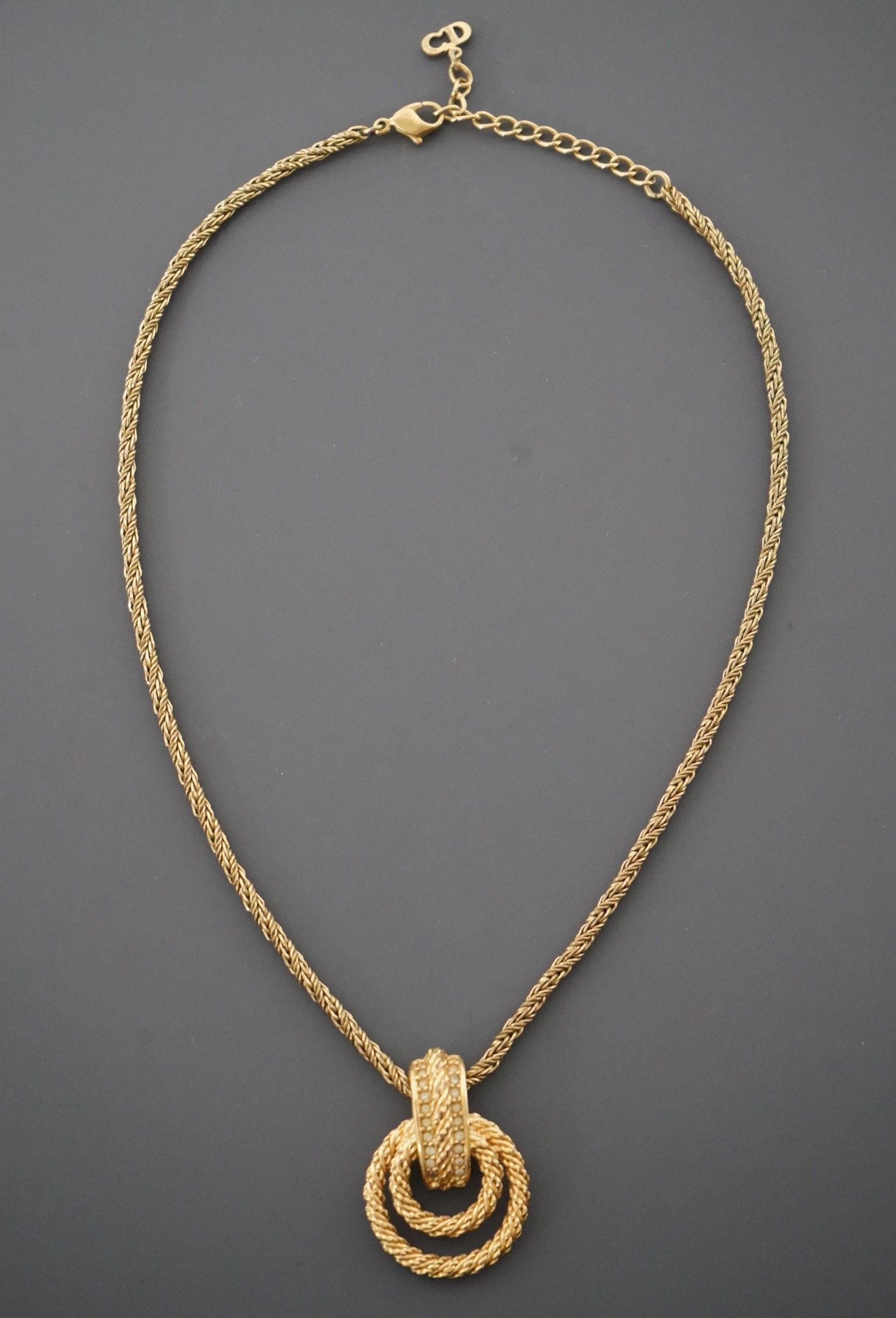 CHRISTIAN DIOR Collier pendentif en métal doré à chaîne tors…
