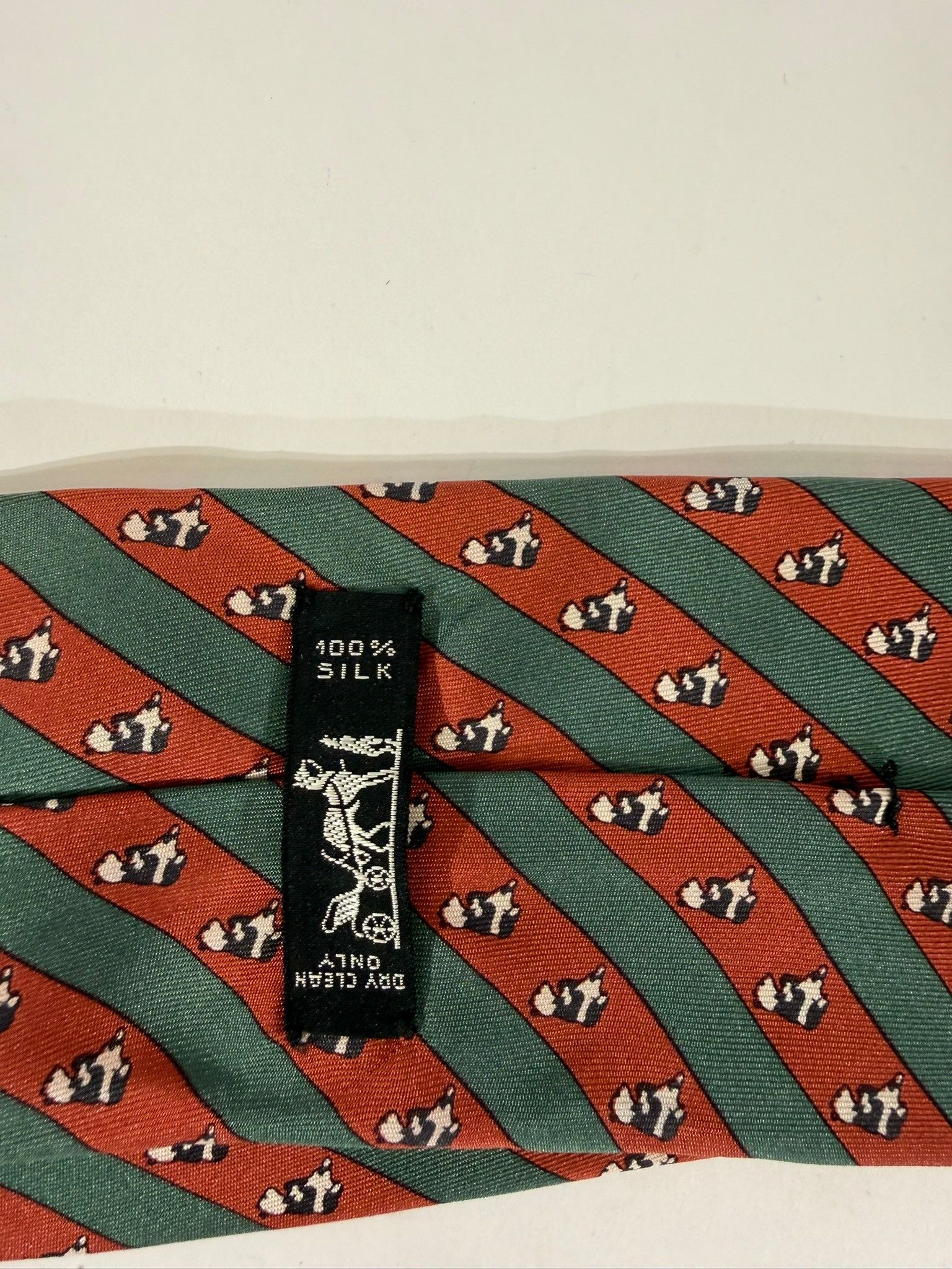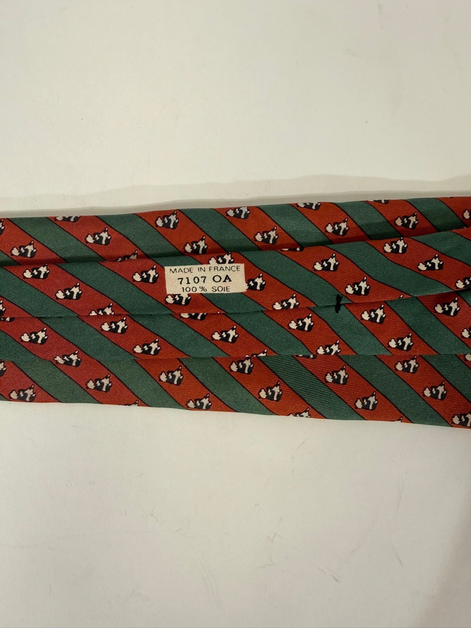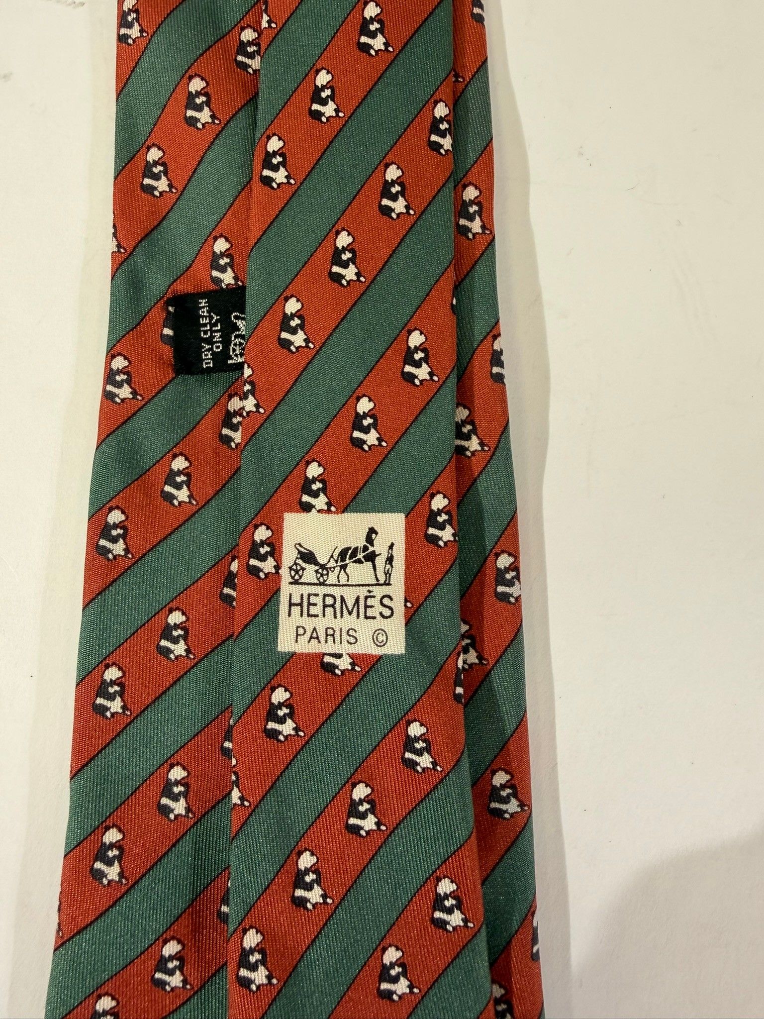 Hermès Paris Cravate en soie à motif de Panda sur fond vert …