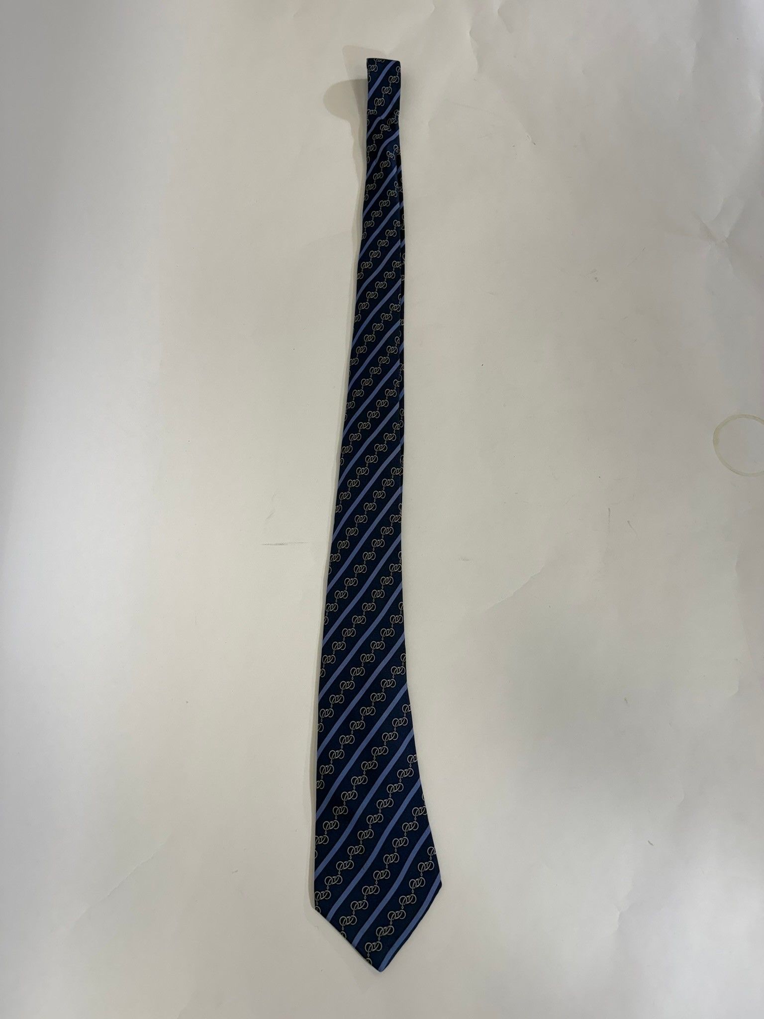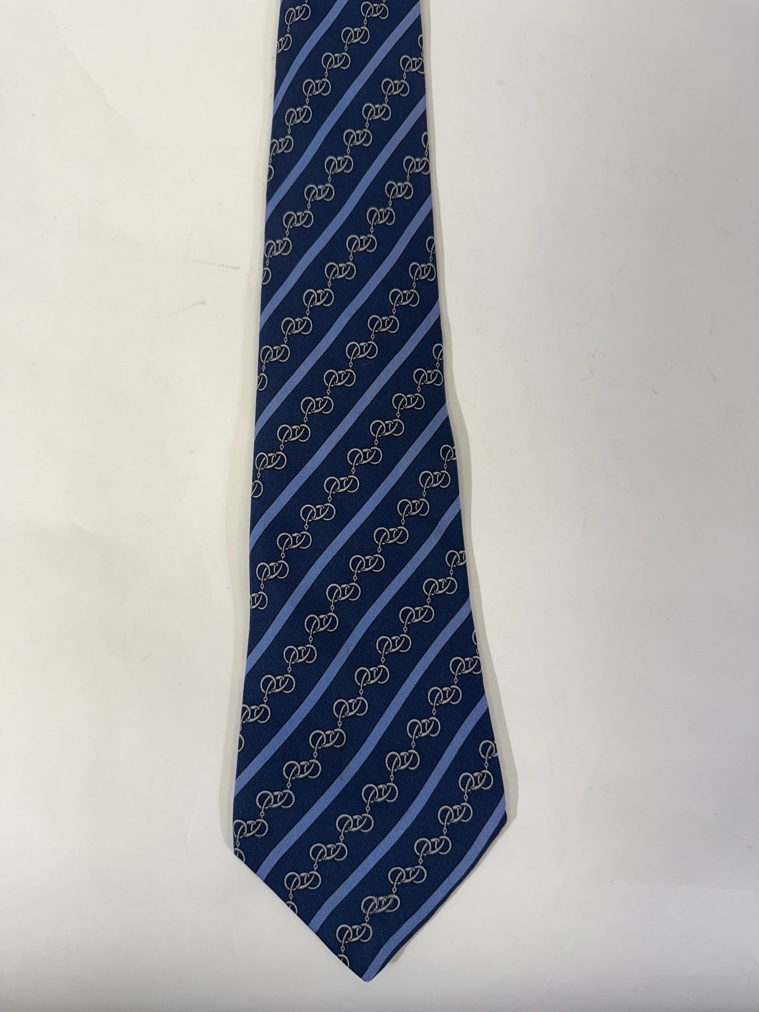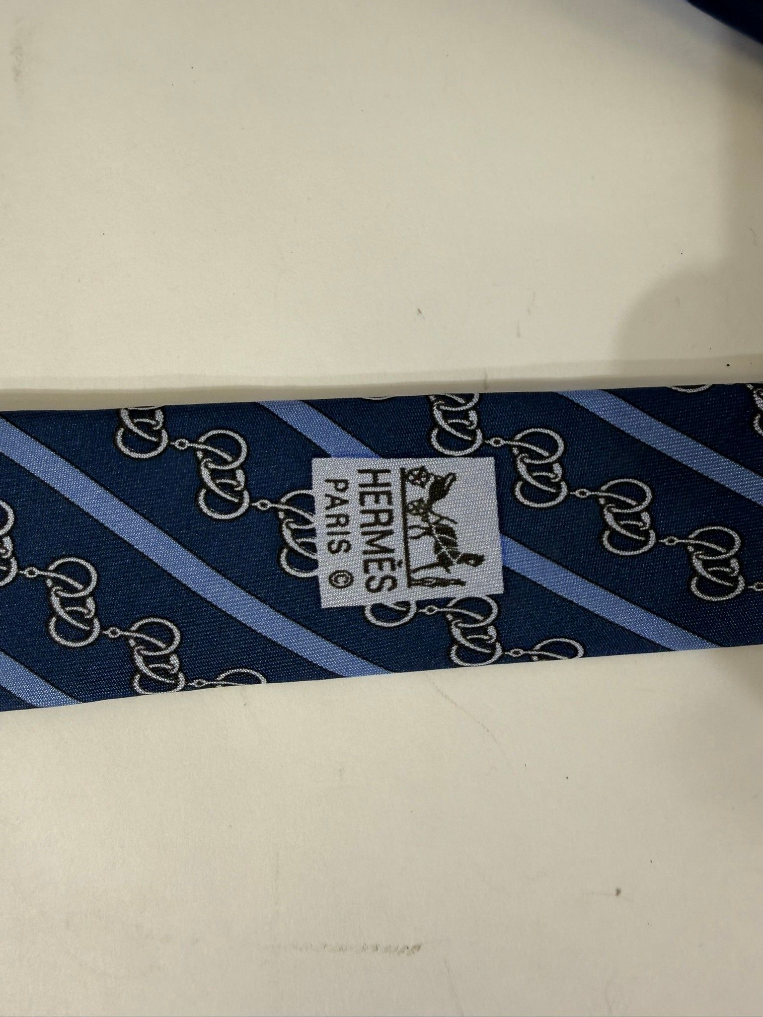Hermès Paris Cravate en soie à motif de morts sur fond bleu