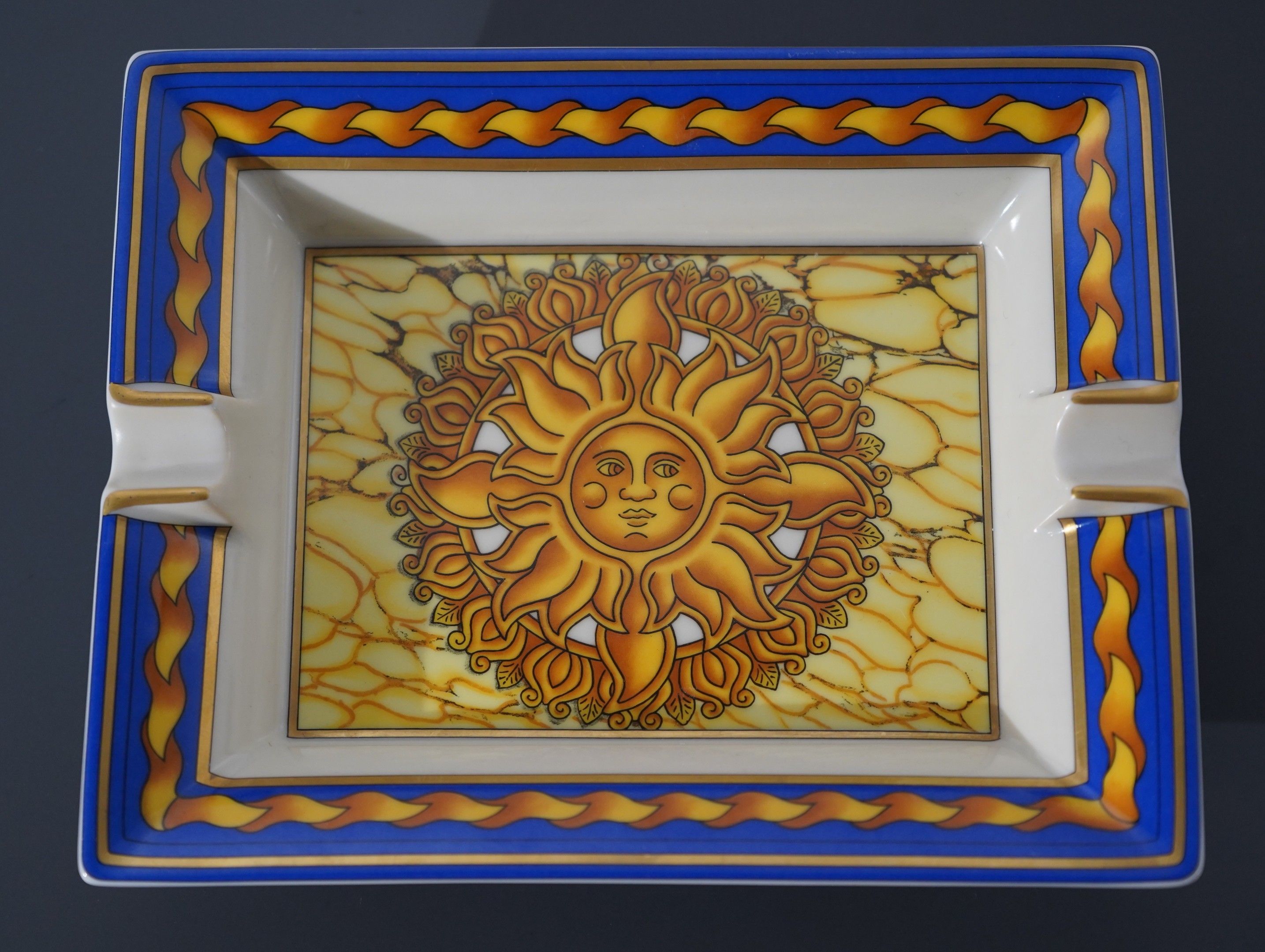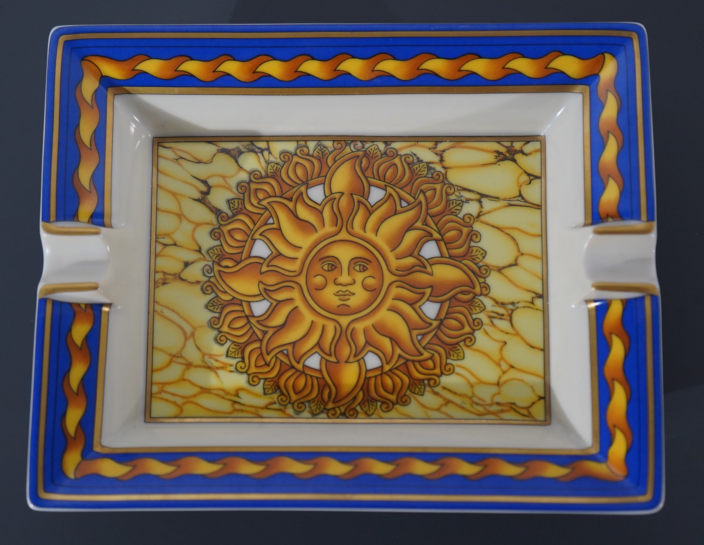 HERMÈS PARIS Cendrier en porcelaine à décor d'un soleil, dan…
