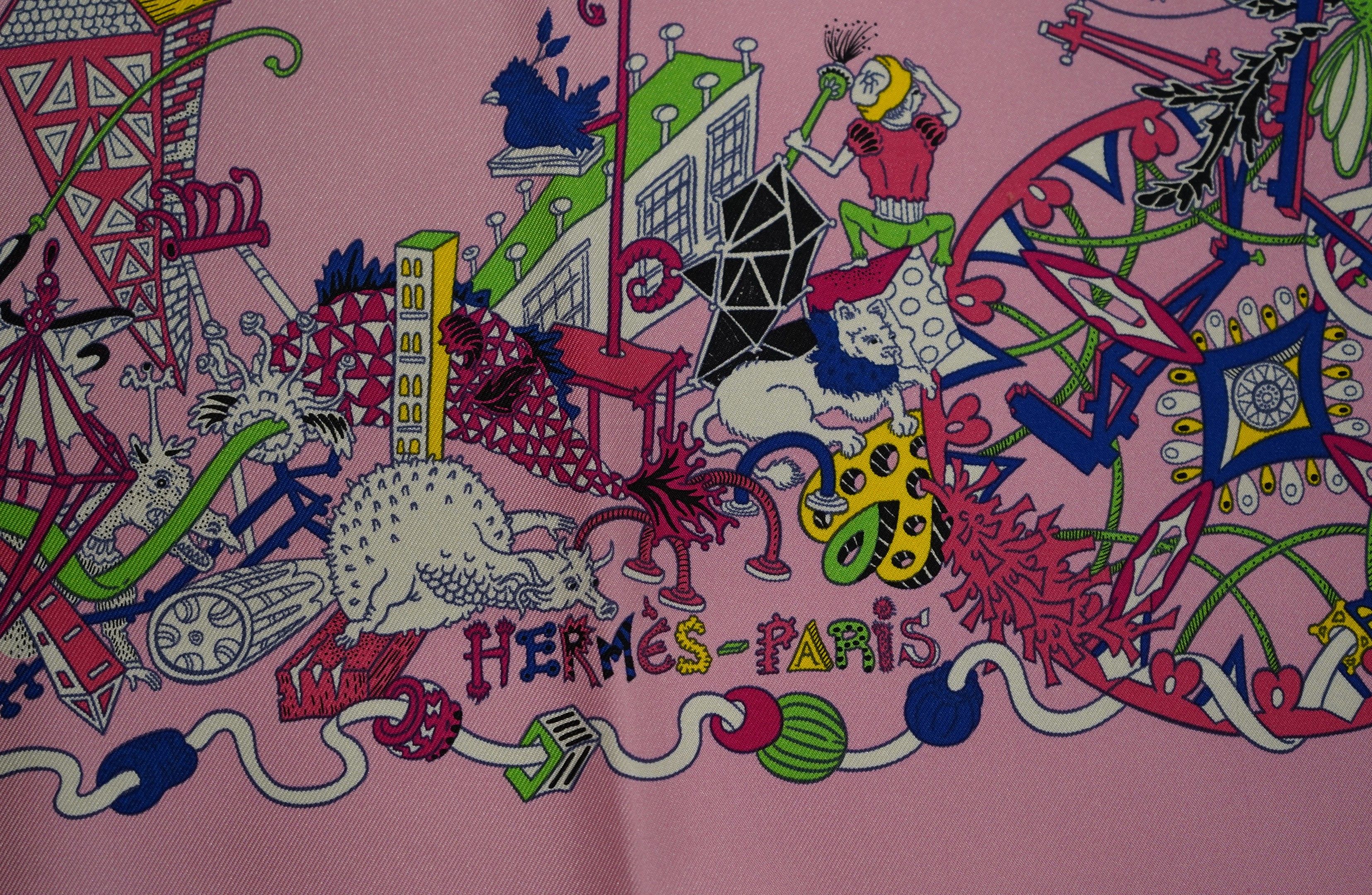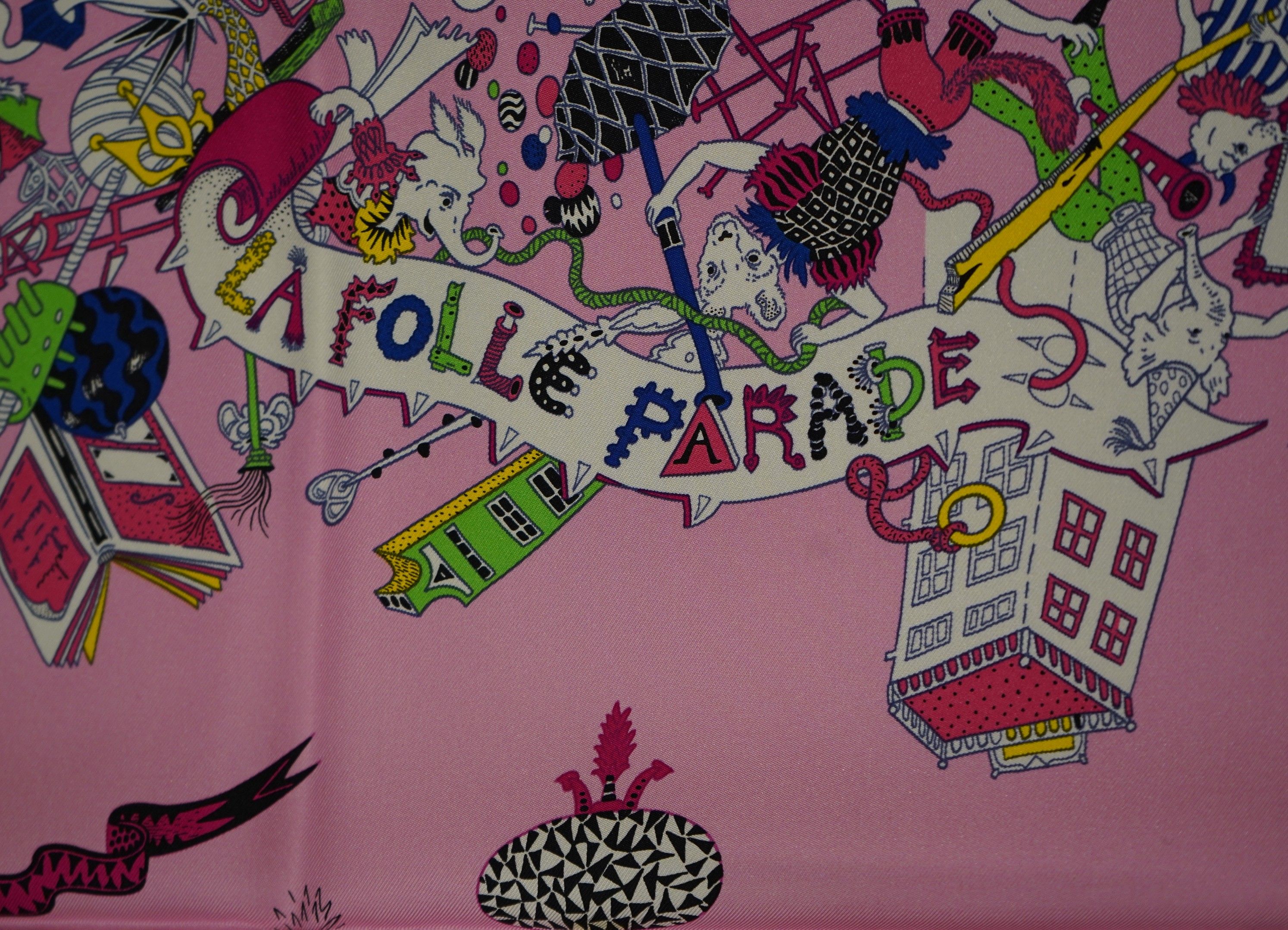 HERMÈS PARIS Carré 90 en twill de soie "La folle Parade", si…