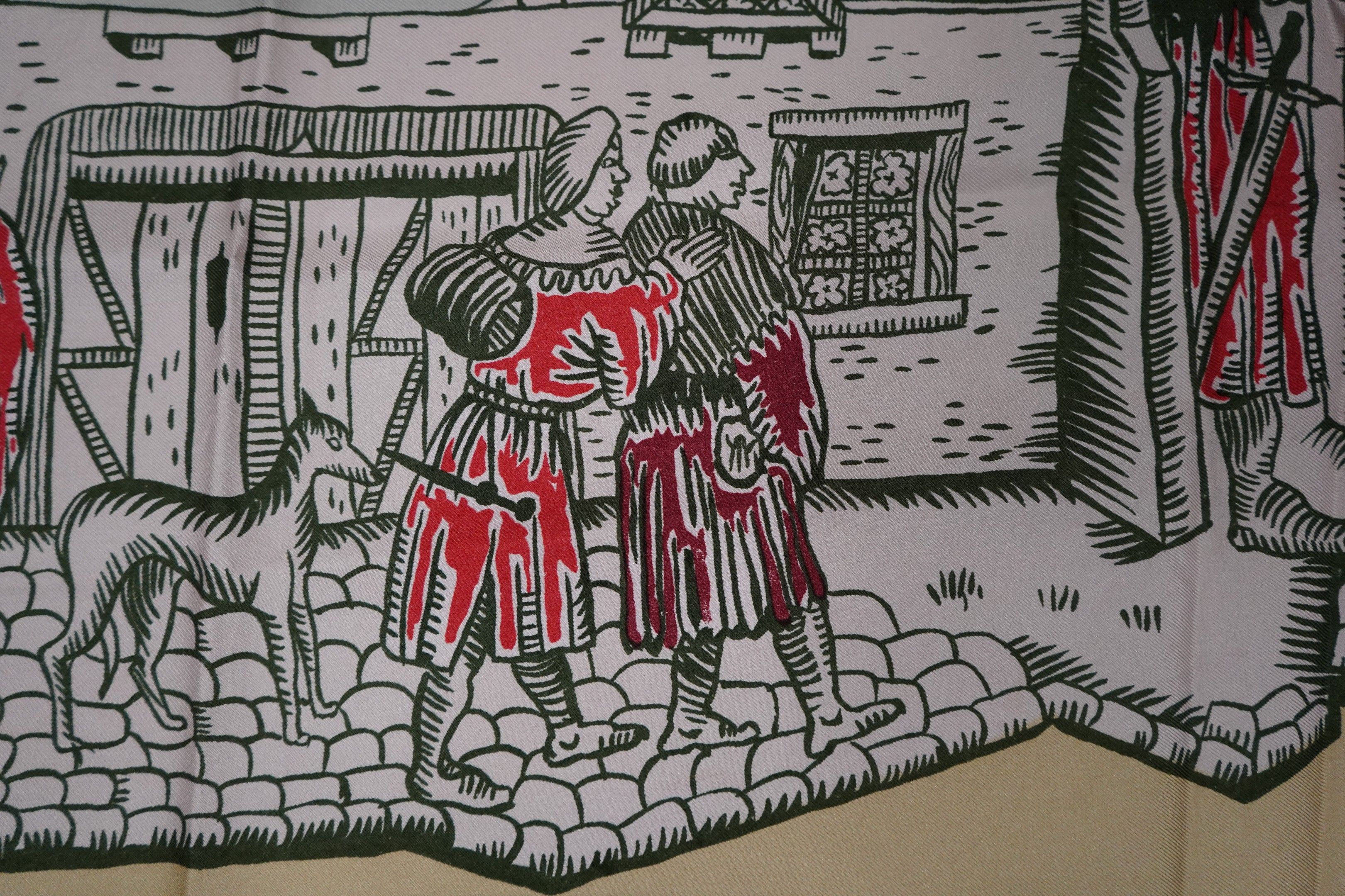 HERMÈS PARIS Année 1960 Carré 90 en twill de soie Le Vieux P…