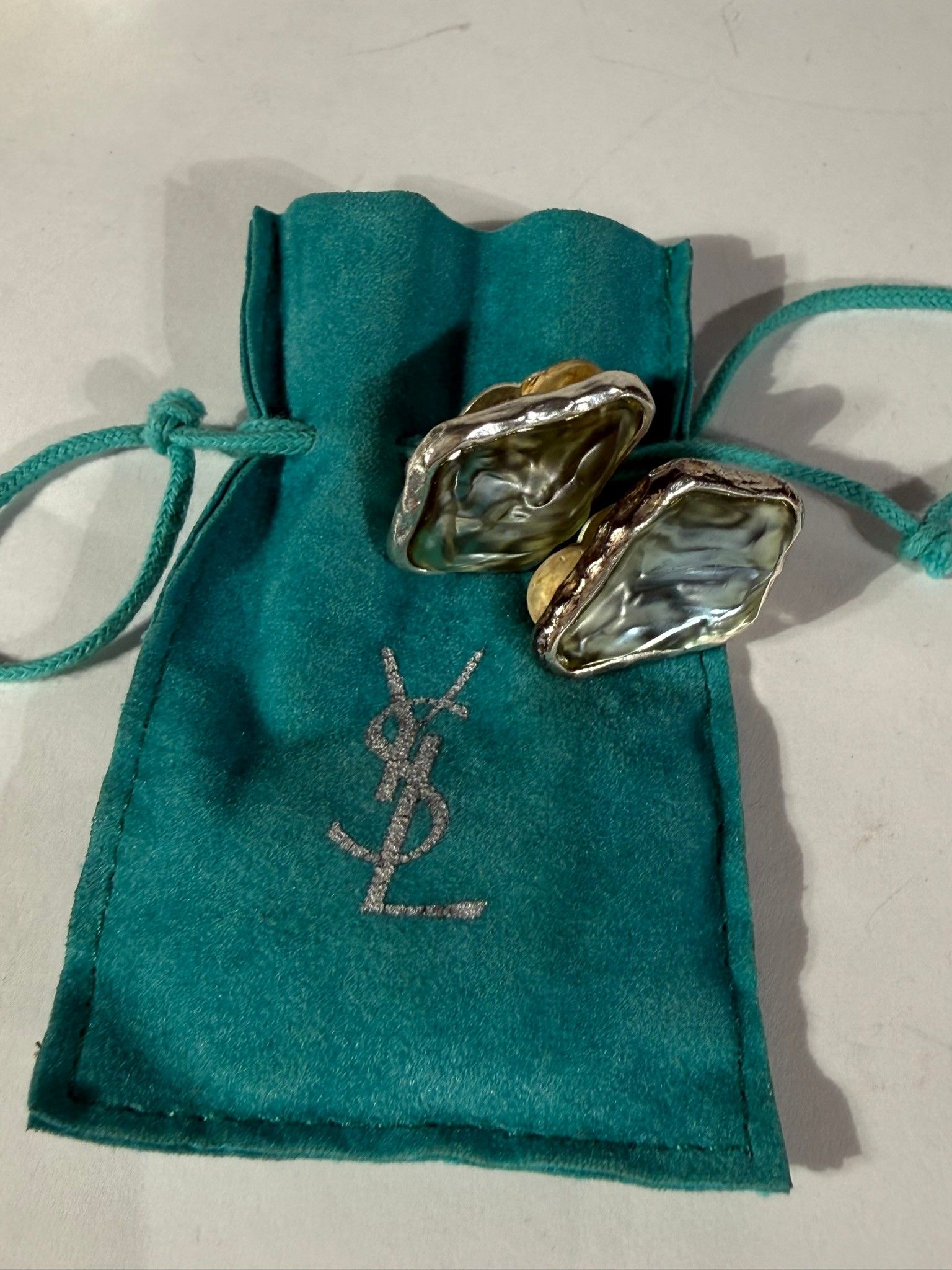 YVES SAINT LAURENT Paire de clips d'oreilles en métal argent…