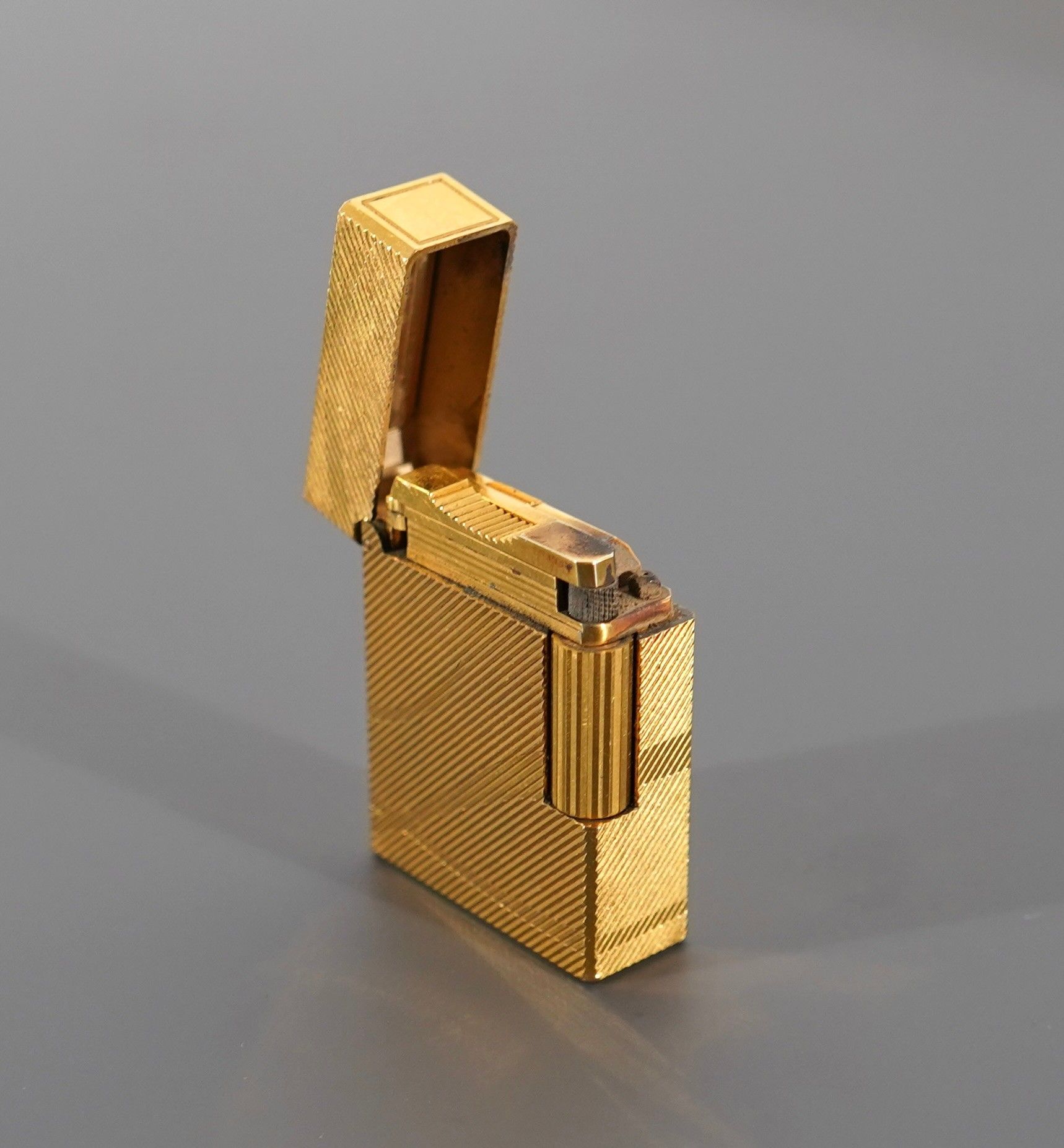 ST Dupont Briquet à gaz en métal doré, de forme rectangulair…