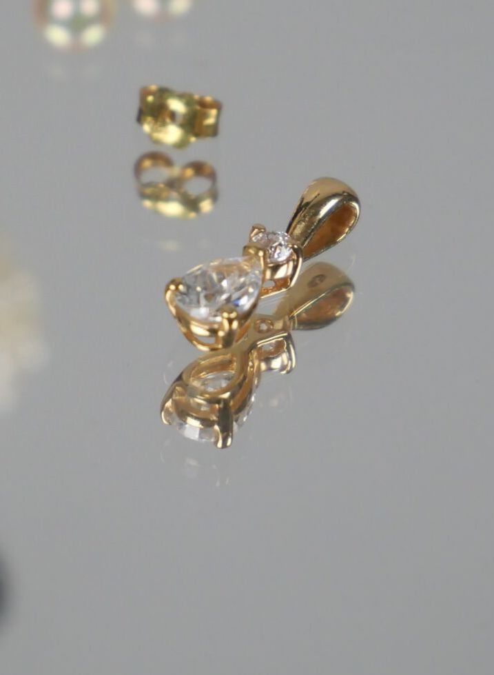 - Pendentif en or jaune 750 millièmes serti d'un strass taille poire. Poids brut : 0,8 g