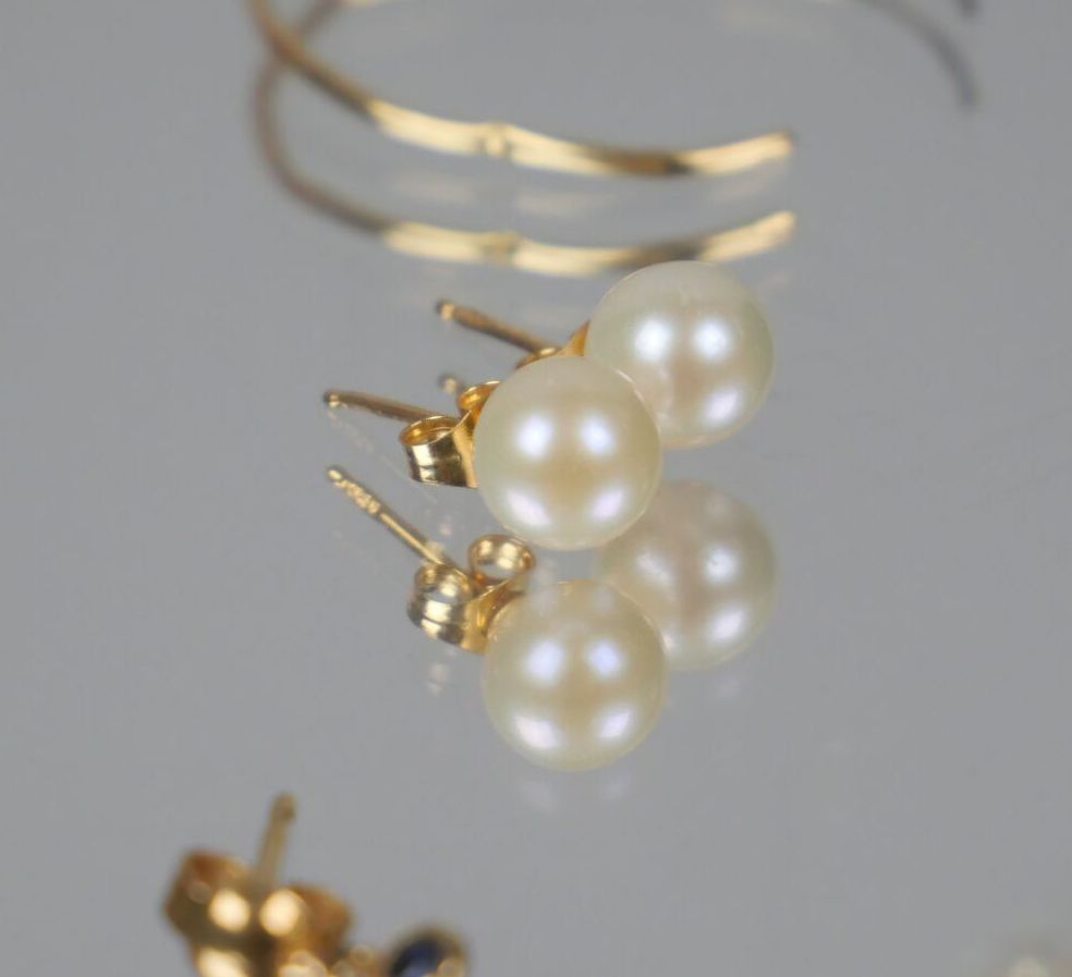 - Paire de boutons d'oreilles en or jaune 750 millièmes et perle de culture. Poids brut : 0,5 g (Manque une poussette)