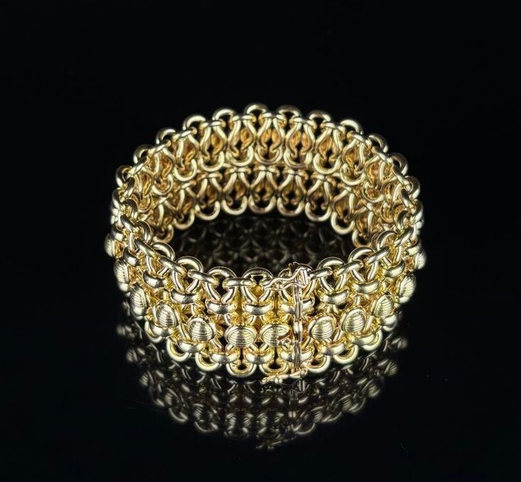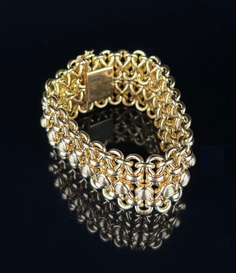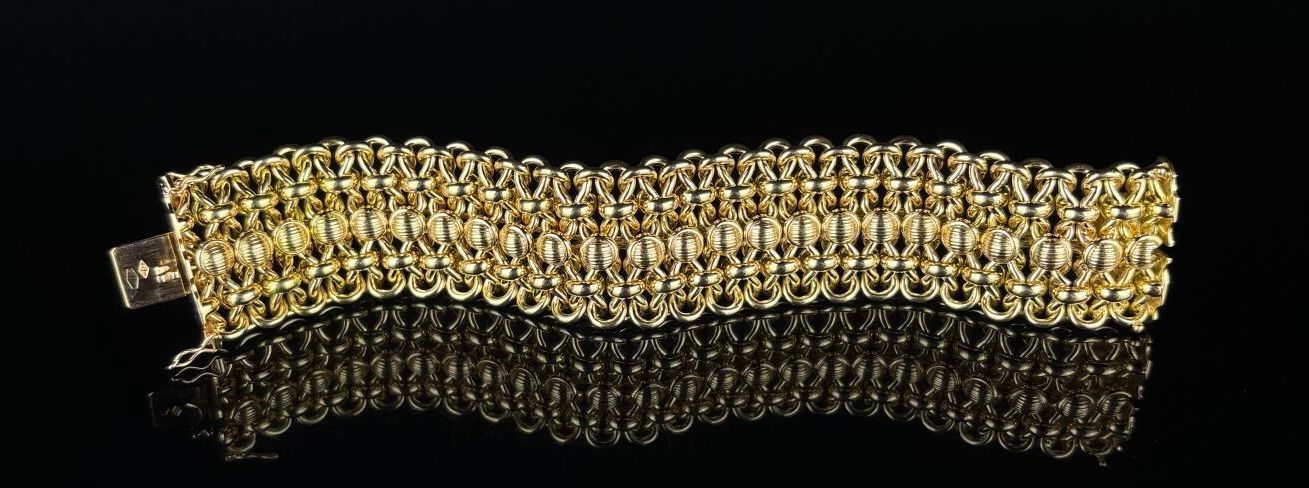 Premium Bracelet en or, à mailles croisées ornées de demi-sphères ca…