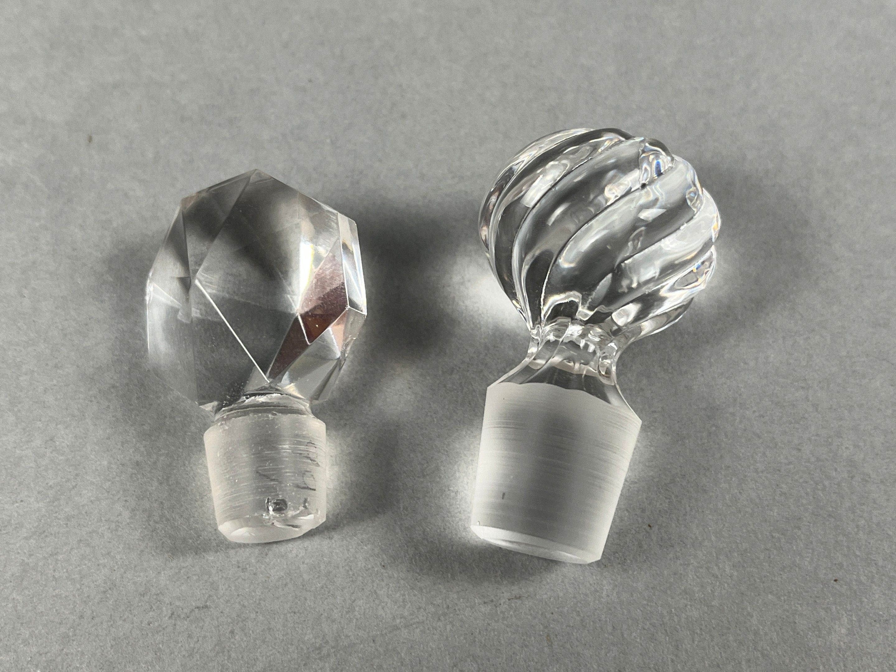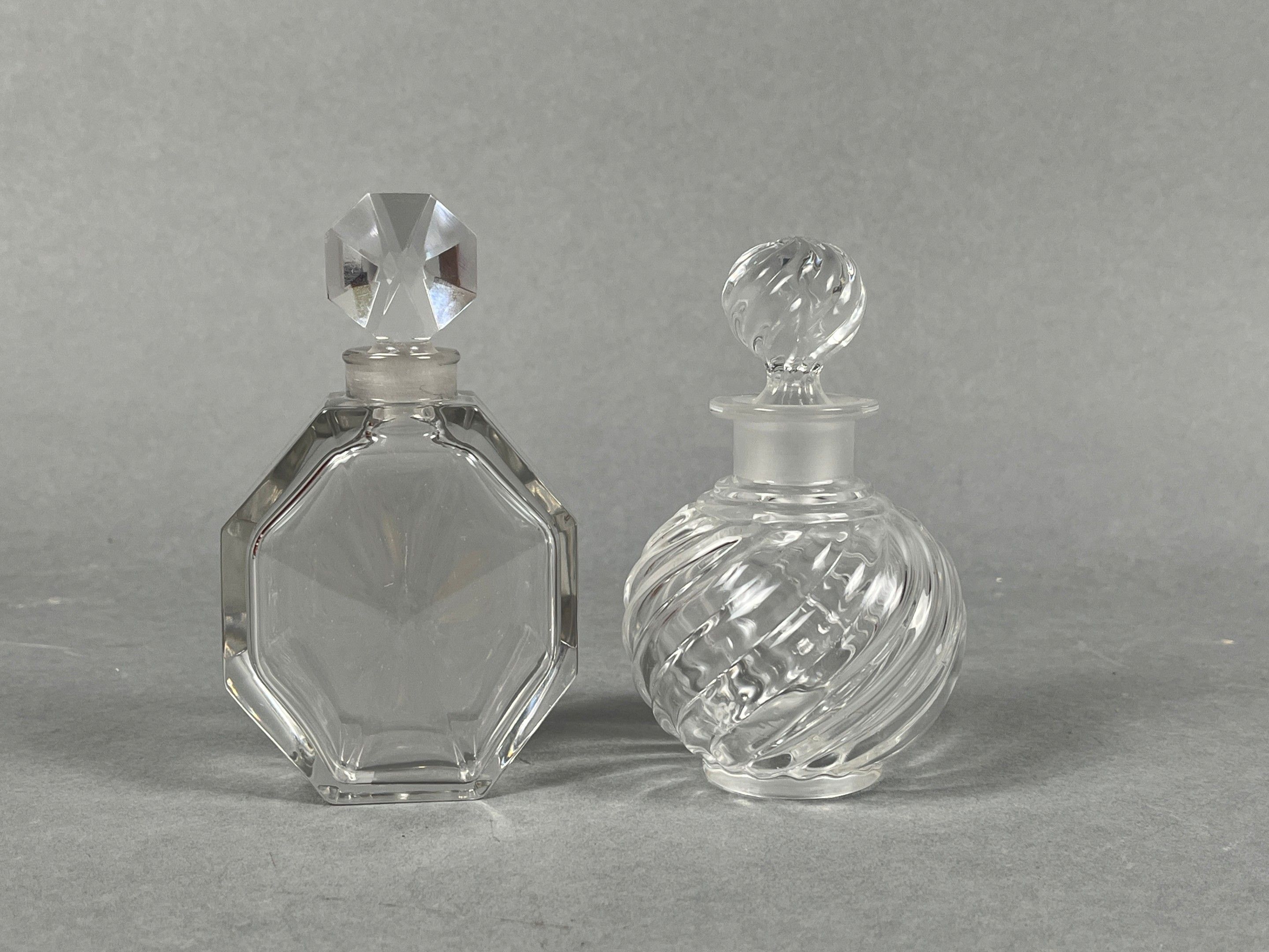 BACCARAT, France. Réunion de deux flacons de parfum en cristal, l'un à cotes torses. Estampillés. H.: 12 et 11,3 cm. Petits éclats sur le bas d'un des bouchons.