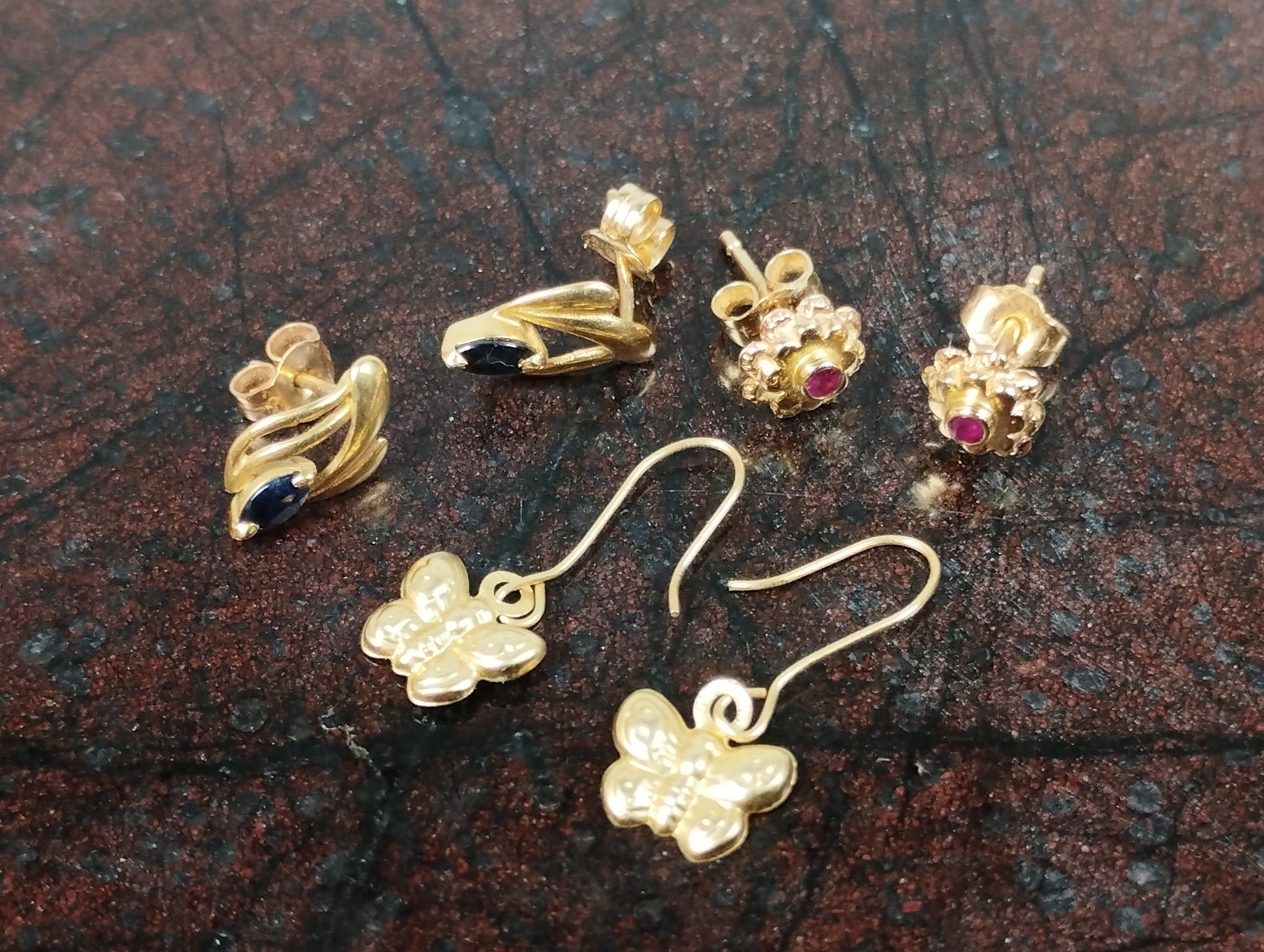 Réunion de trois paires de clous/boucles d'oreilles en or ja…
