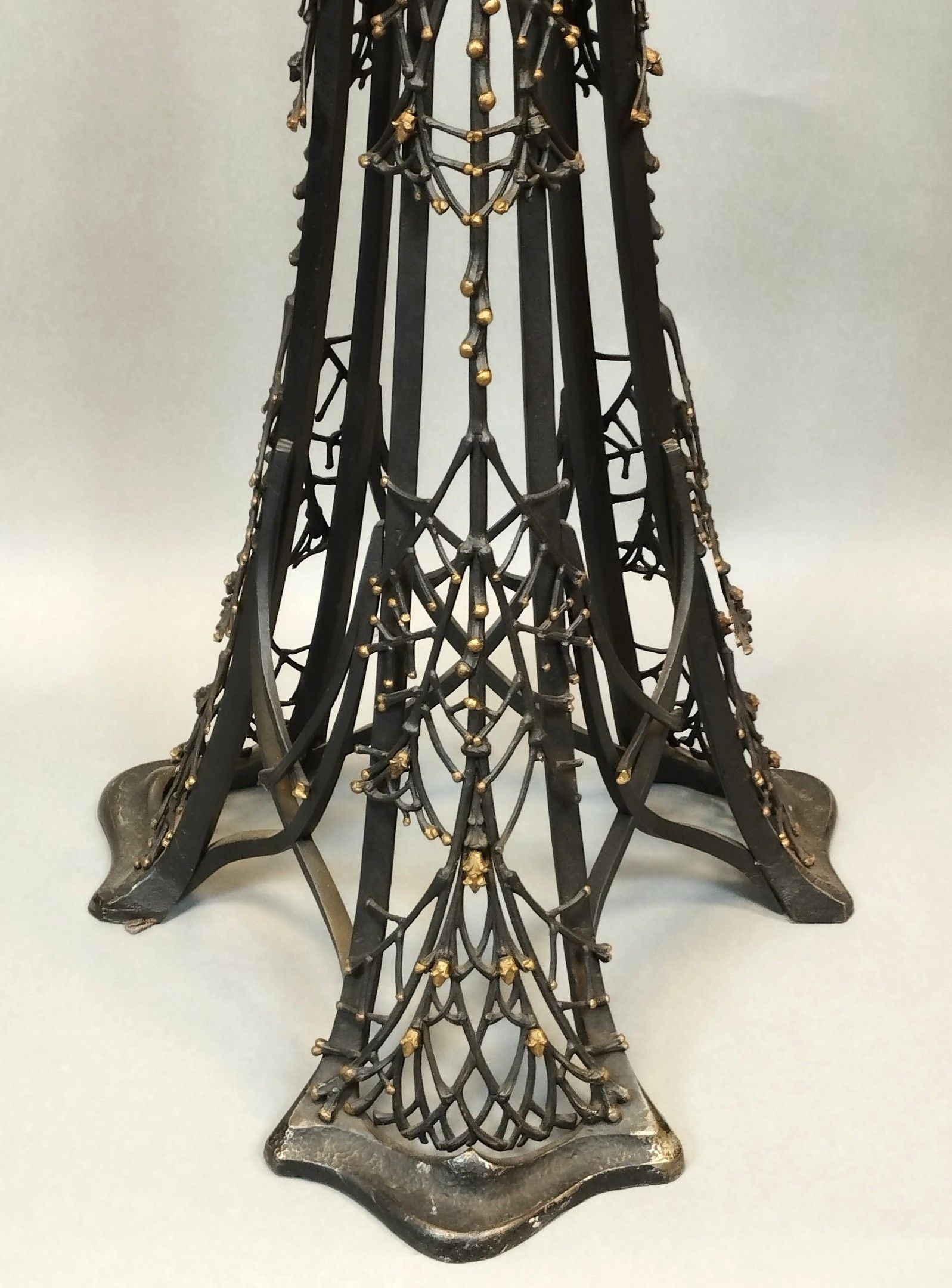 MAJORELLE, Nancy (Lorraine). Grand lampadaire aux algues en fer forgé et bronze. Vers 1910. Haut. 198 cm. Diam. vasque : 58 cm.
