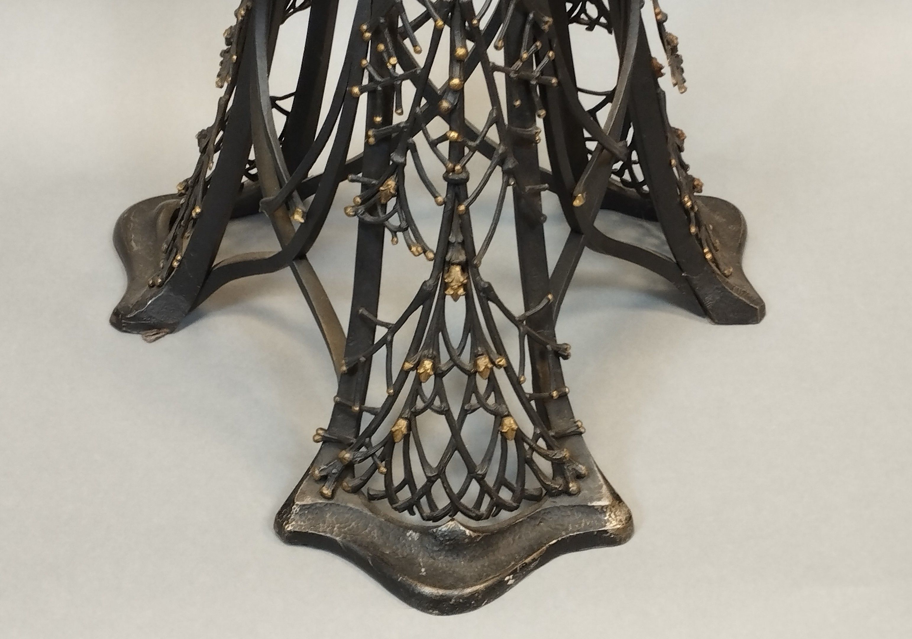 Une mise en teinte postérieure a modifié le délicat jeu de bichromie d'origine où les algues, tout en bronze, se détachaient de la structure du piètement, traitée en couleur argent. Une restauration, à l'image de celle qui fut menée sur l'exemplaire du musée de l'Ecole de Nancy, permettrait de rendre à ce lampadaire toute sa splendeur.
