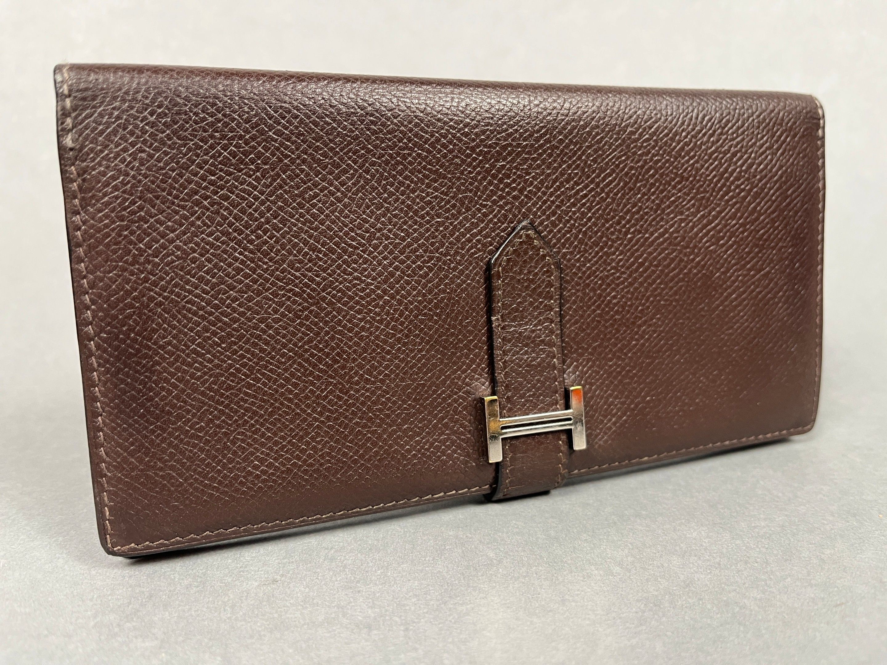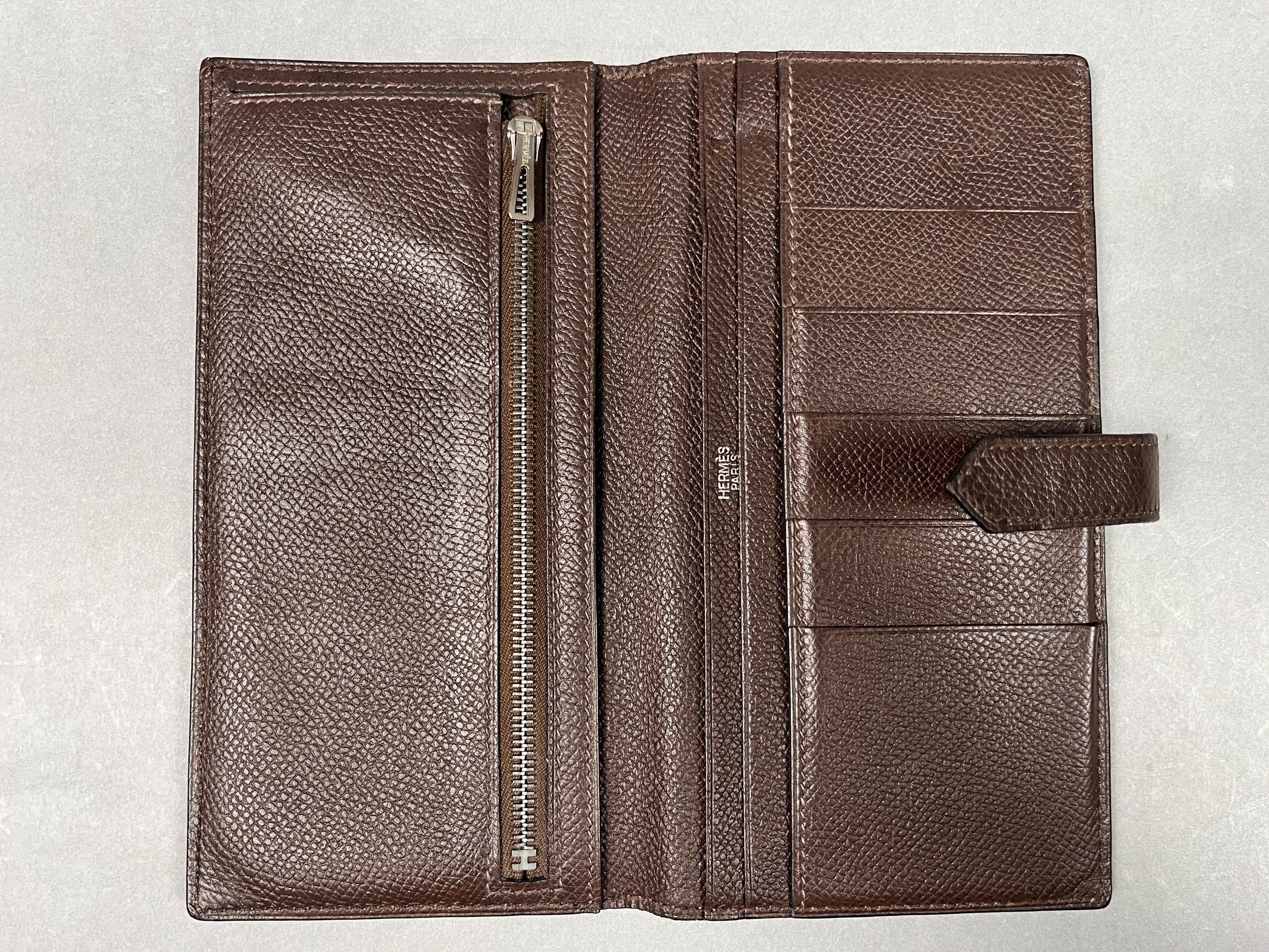 HERMES, Paris. Portefeuille "Béarn" en cuir grainé brun et s…