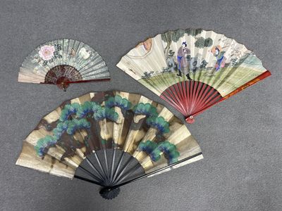 Trois éventails asiatiques. L. :15,26 et 29 cm.
