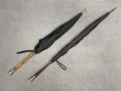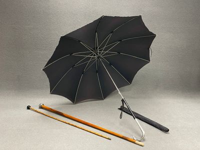 Parapluie et deux cannes. L. :77 cm, 86 cm et 89 cm.