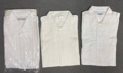 Trois chemines de smoking, Christian Dior, Gregory et Arcas.