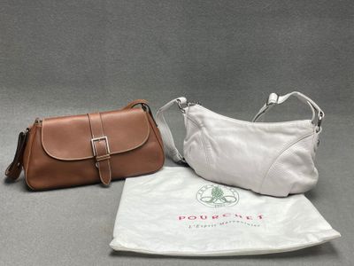 Deux sacs à main en cuir . Pourchet, 20 x 35 cm.