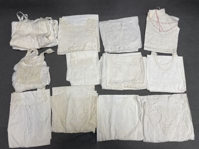 Lot de vetements début XX°: tabliers, culotte, bonnets, chem…
