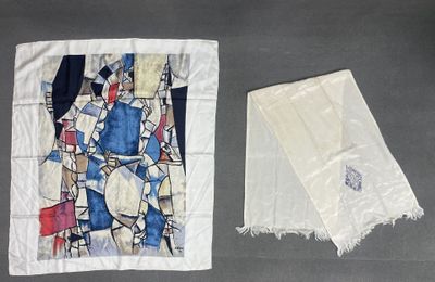 Deux foulards en soie dont un Fernand Léger 90 x 80 cm et 12…