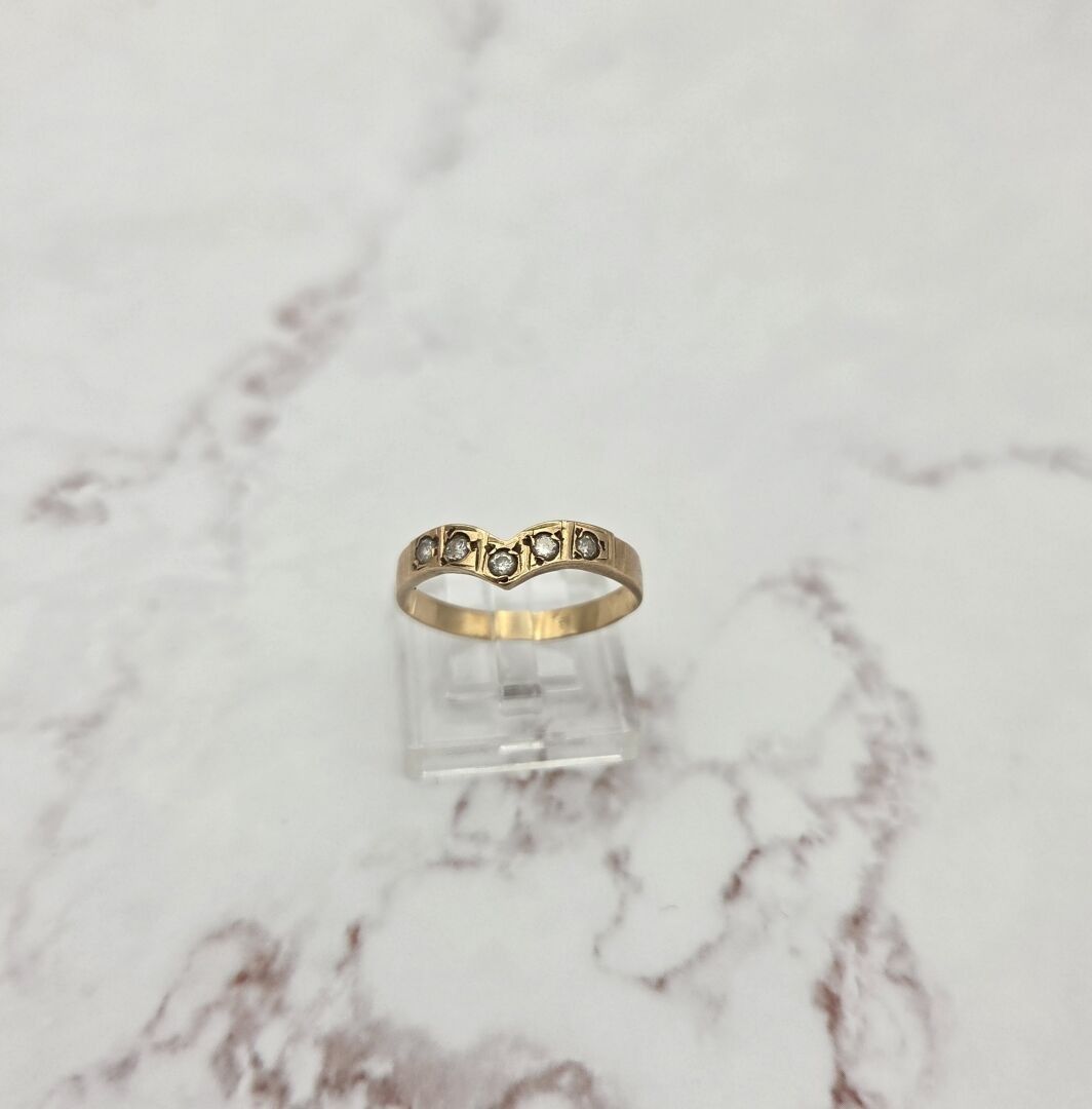 Une bague en or jaune 750 millièmes, motifs en V sertie de 5 pierres blanches - PB : 1.8g - Taille : 59