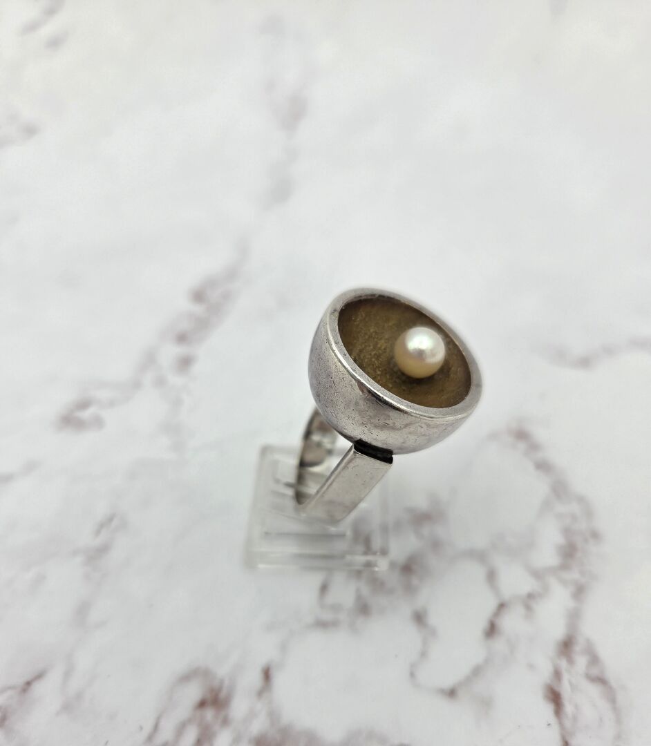 Une bague moderniste en argent, sertie d'une perle de cultur…