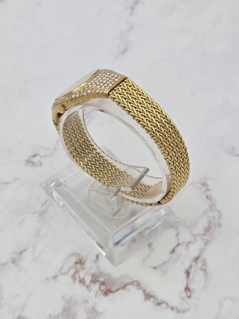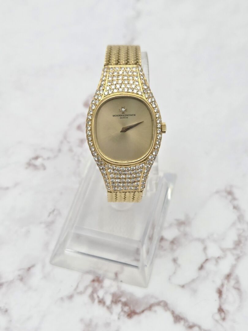 VACHERON CONSTANTIN - Montre bracelet de dame en or jaune 750 millièmes et diamants taillés en brillants, cadran doré muet, bracelet maille tressée, dos numéroté 538426-P, mouvement mécanique à remontage automatique- PB : 54,3 g