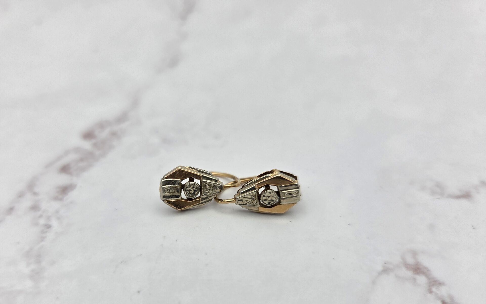 Paire de dormeuses en or jaune et gris 750 millièmes, Art Deco, accidents et manques - P : 1,5 g