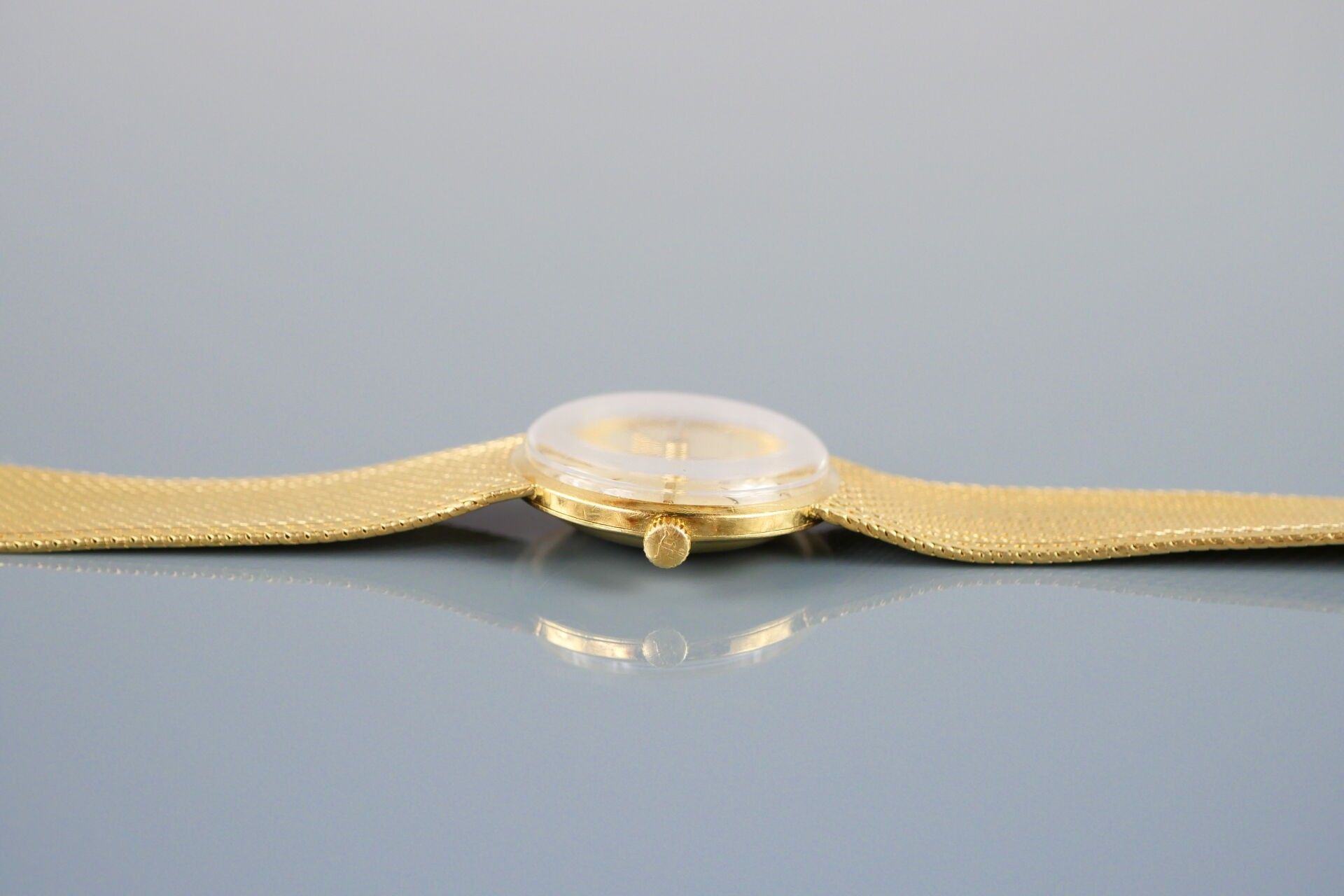Veuillez noter que toutes les montres sont vendues en l'état. Aucune garantie sur l'état de fonctionnement. La plupart des montres ont été ouvertes pour identifier le type et la qualité du mouvement, y compris les montres résistantes à l'eau. Il est conseillé à l'acheteur de consulter un horloger pour revoir l'étanchéité de la montre. Les indications données sur l'existence d'une restauration, d'un accident ou sur l'état de préservation restent soumises à l'appréciation personnelle des acquéreurs. L'absence d'indication de pièces de remplacement, d'une restauration ou d'un accident n'implique nullement qu'un bien soit exempt de tout défaut présent. Tous les objets présentés sont susceptibles d'avoir fait l'objet d'un service antérieur et peuvent présenter des pièces non d'origine. Les dimensions et le poids des objets sont renseignés à titre approximatif.