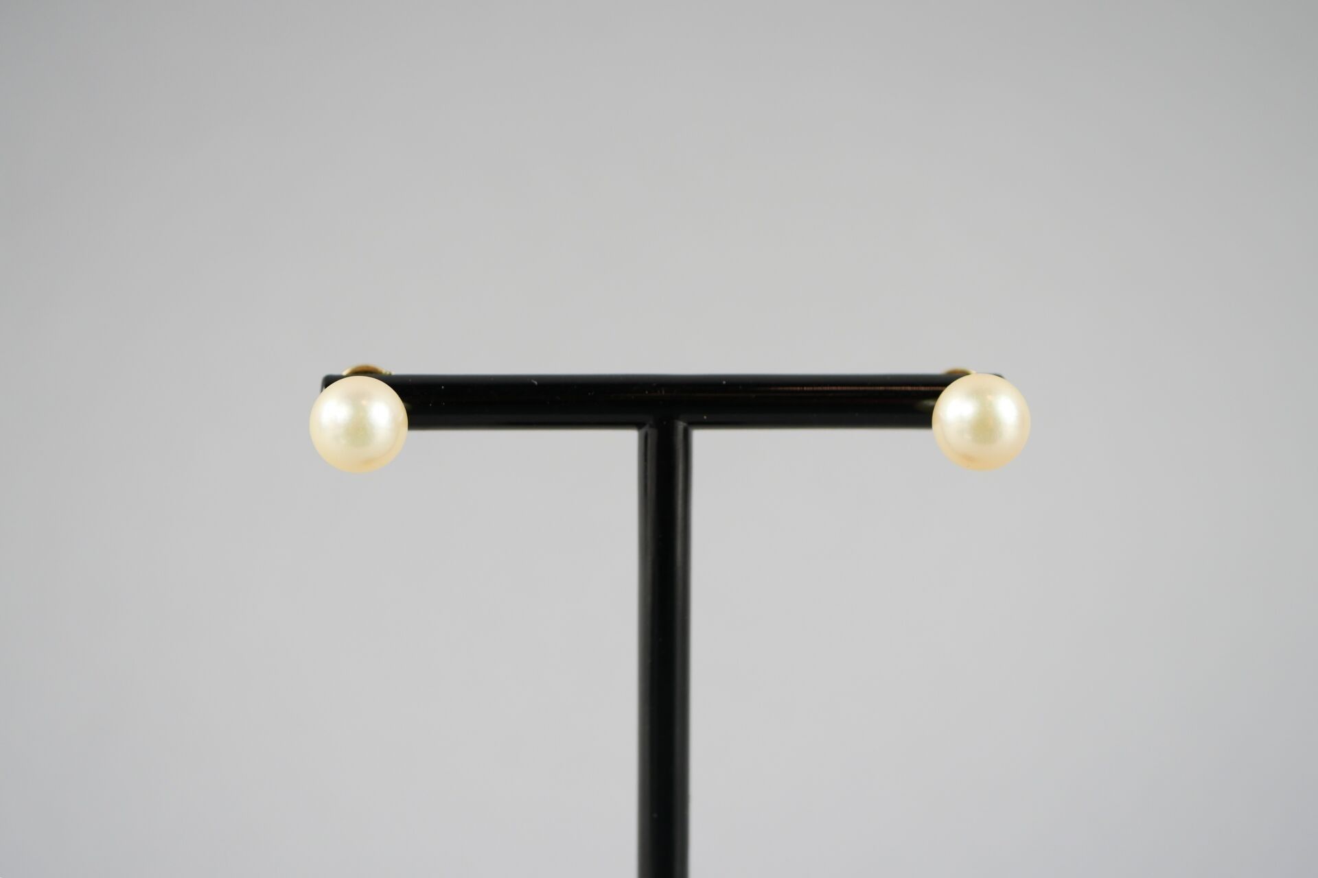 Paire de clous d'oreilles en or jaune 18K-750 millièmes sertis d'une perle. Fermoirs Alpa.