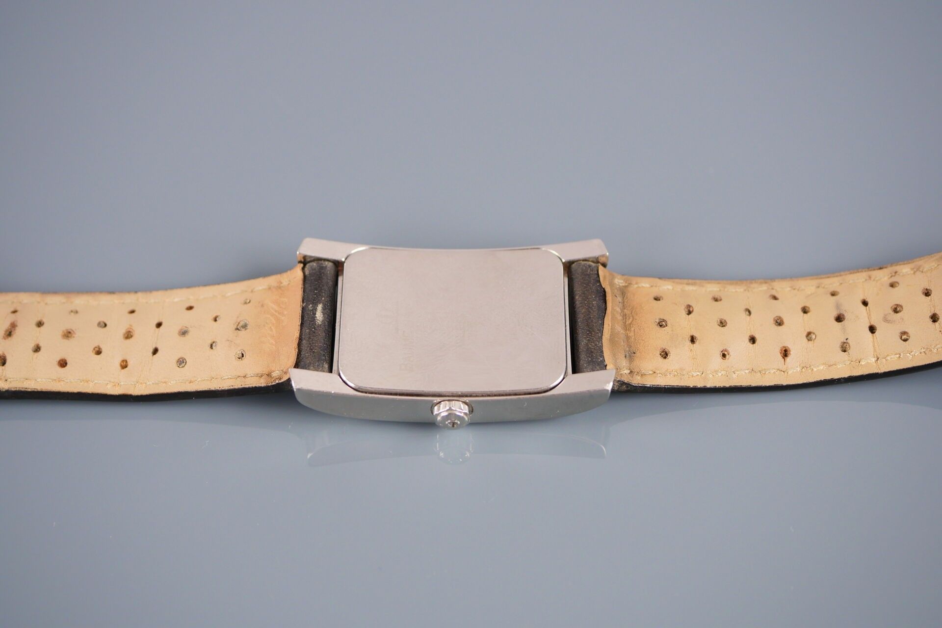 Prévoir le remplacement de la pile. Mouvement non-testé. Vendue sans garantie de fonctionnement. Bon état général, quelques griffures d'usage. Rayures sur la carrure coté 3h. Couronne siglée.