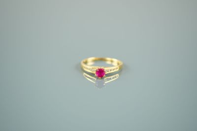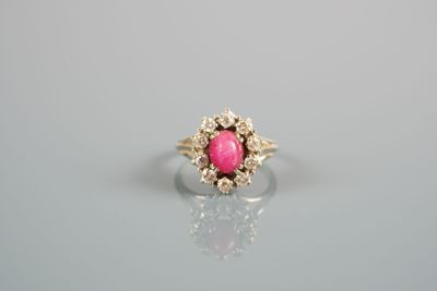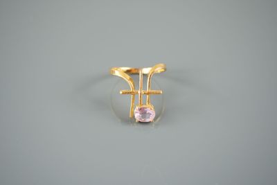 Bague en or jaune 18K-750 millièmes serti d'une pierre rose …