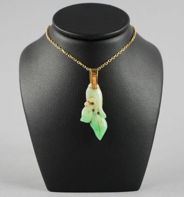 Deux pendentifs en pierre verte de style jade dont un avec u…