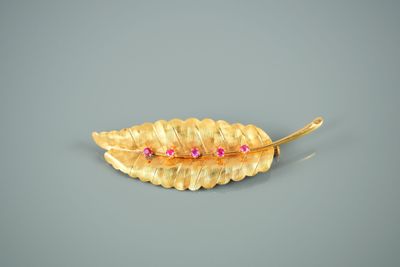 Broche feuille en or jaune 18K-750 millièmes sertie de pierr…