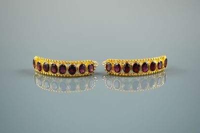 Deux poissardes en or jaune 18K-750 millièmes et argent sert…