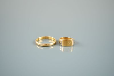 Une alliance et une bague en or 18K-750 millièmes ; l'une av…