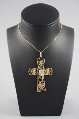 Croix en argent 800 millièmes sertie de grenats facettés.