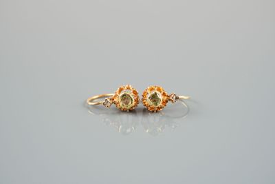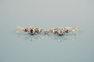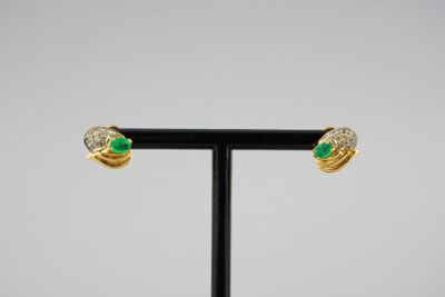 Paire de dormeuses en or jaune 18K-750 millièmes serties de …