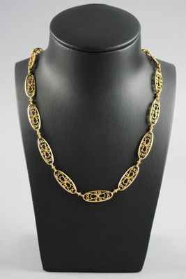 Collier en or jaune 18K-750 millièmes à maille filigrane.