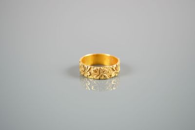 Bague en or jaune 18K-750 millièmes à décor en bas relief de…