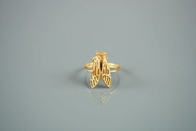 Bague en or jaune 18K-750 millièmes à décor d'une cigale ser…