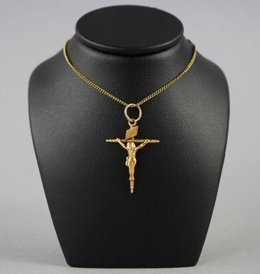 Pendentif crucifix ou croix en or jaune 18K-750 millièmes.