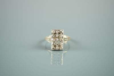 Bague en or gris 18K-750 millièmes à plateau rectangulaire s…