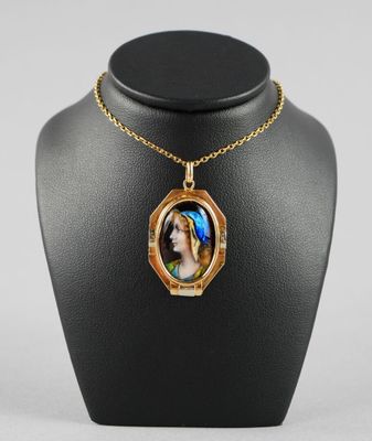 BETOURNE, Limoges. Pendentif en or 18K-750 millièmes centré …